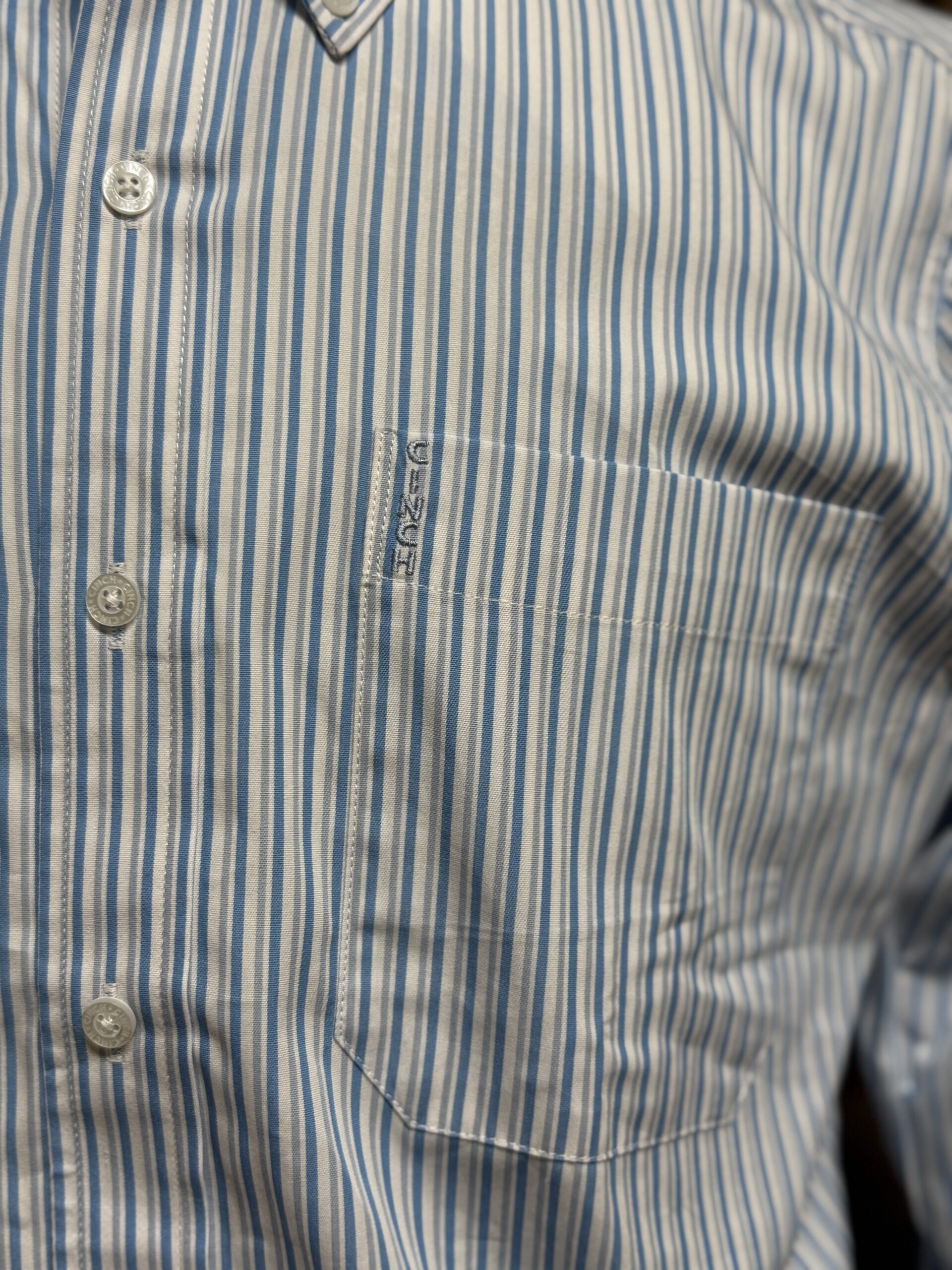 • Mens Cinch Classic L/S Button Down White/Blue Stripe