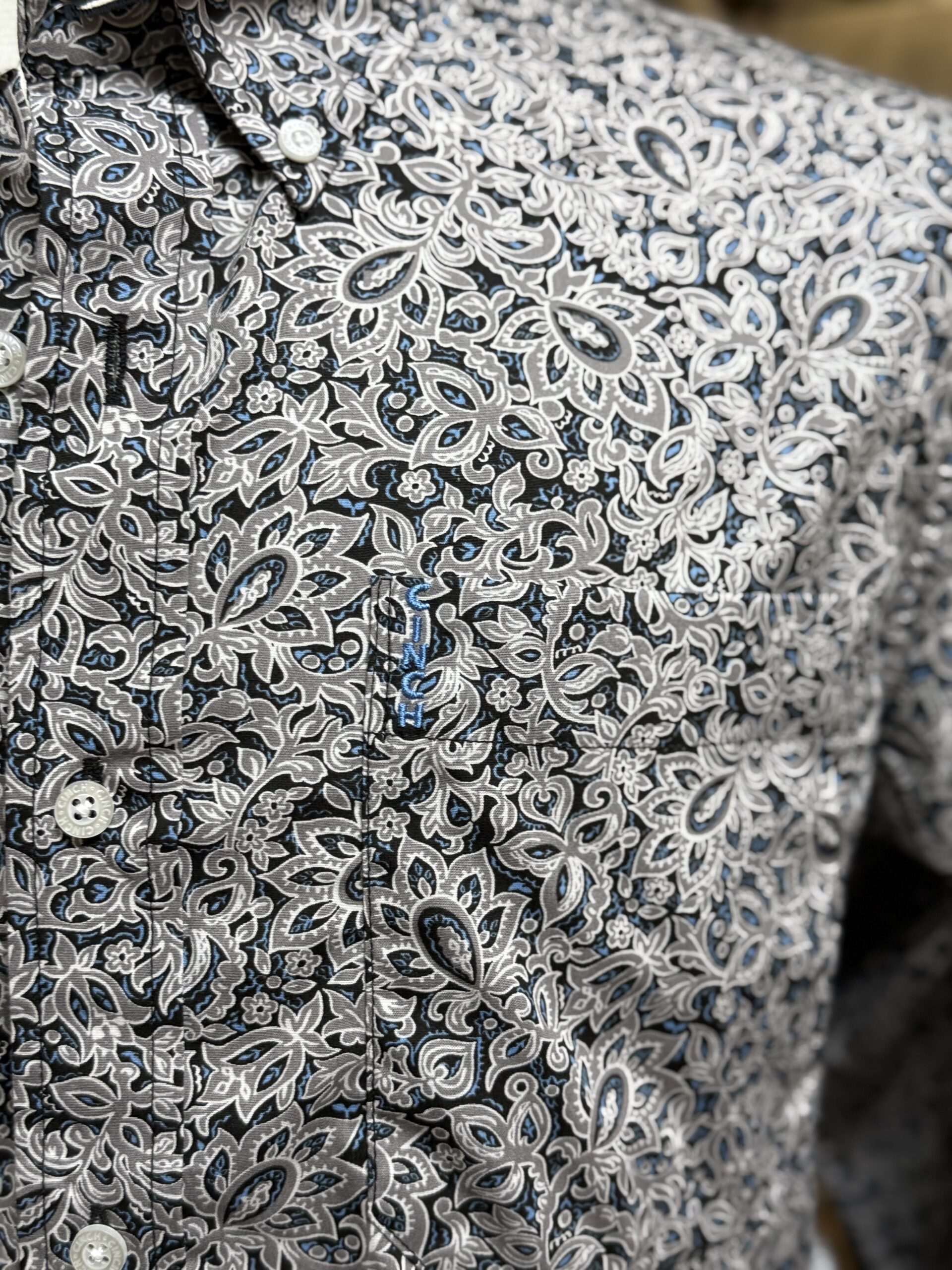 • Mens Cinch Modern Fit L/S Button Down Grey/Blue Paisley