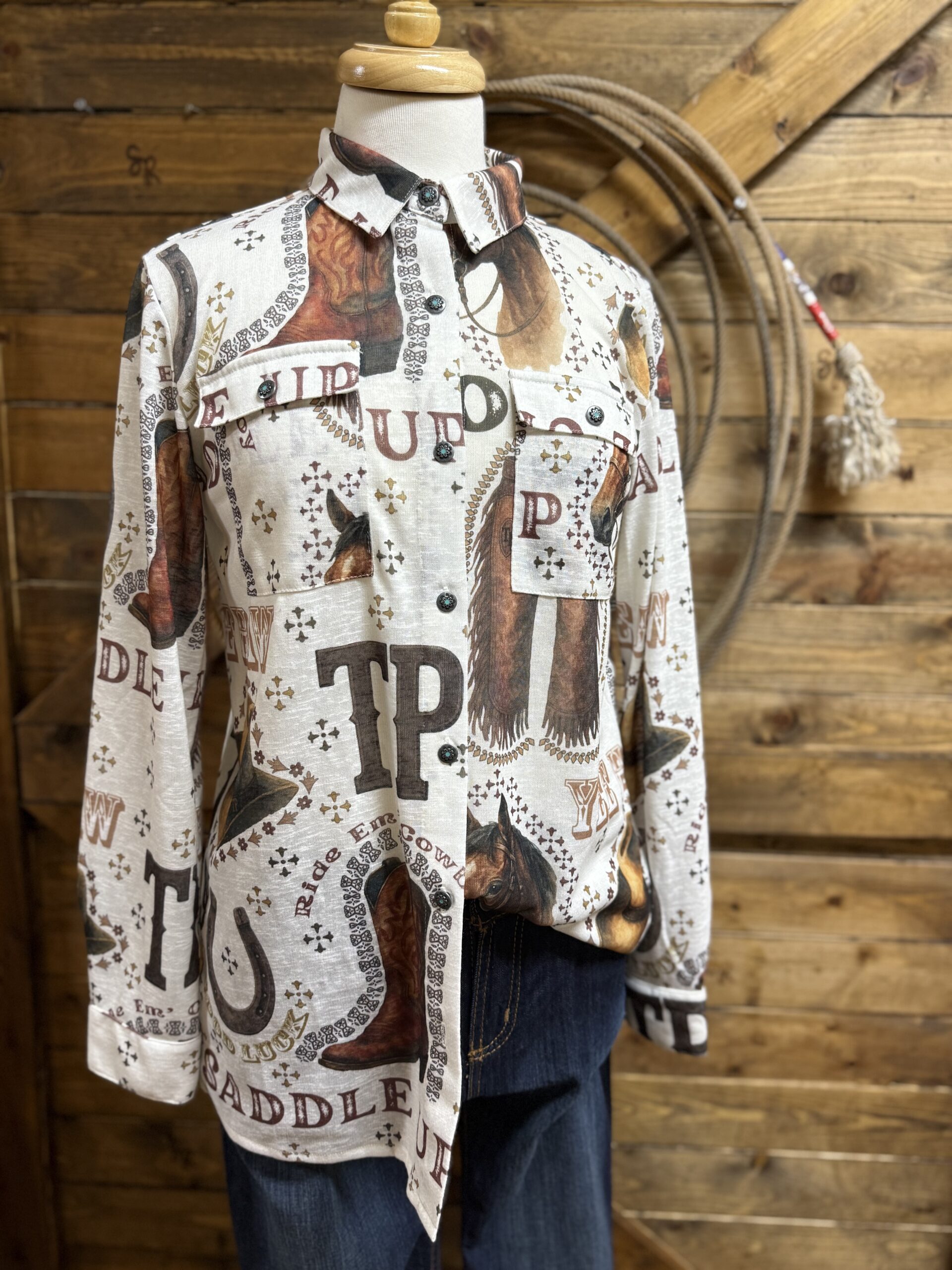 Womens Roper Western Pearl Snap Blouse Boot Print