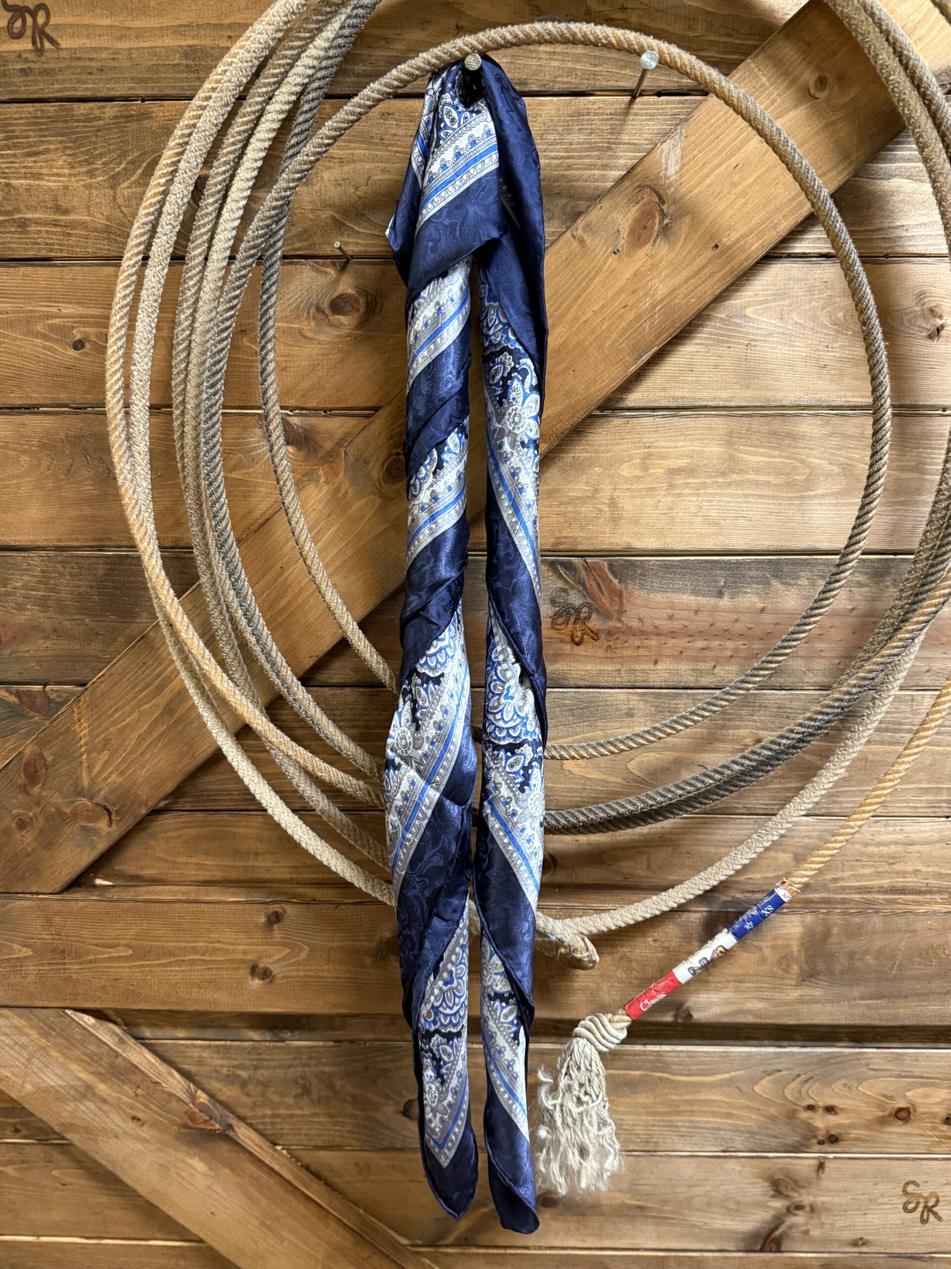 Cobalt Blue and Silver Paisley Silk Wild Rag