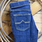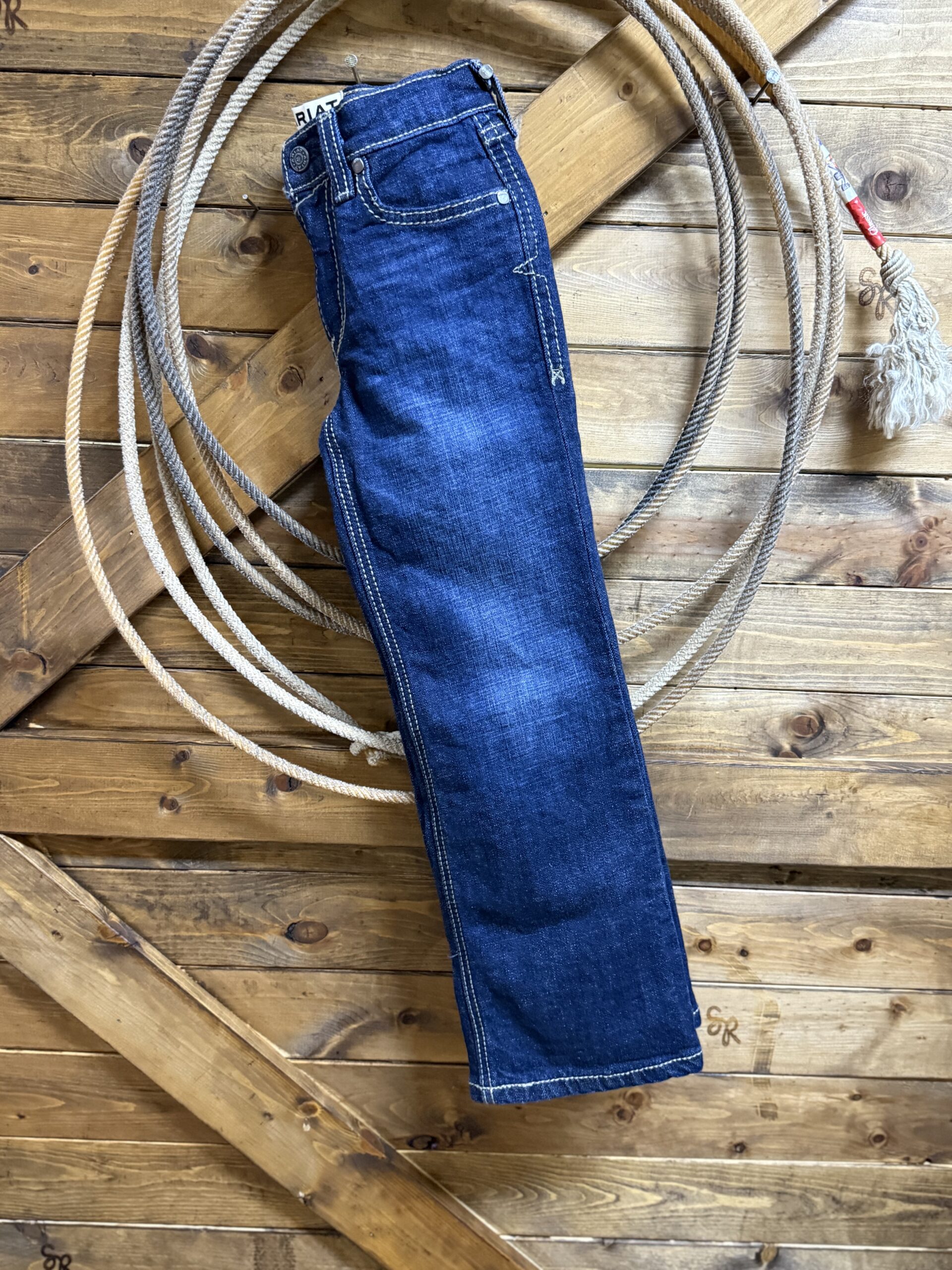 Welcome Oliver to the M4 line of denim for boys. A great darker wash denim with the same consistent wash down the front and back of the legs. A pretty simple back pocket design in a solid stitch pattern and color crosses each one. Good relaxed fit boot cut jean that is great for everyday wear. Starch them up for a crips look for those nicer occasions in which may call last minute.