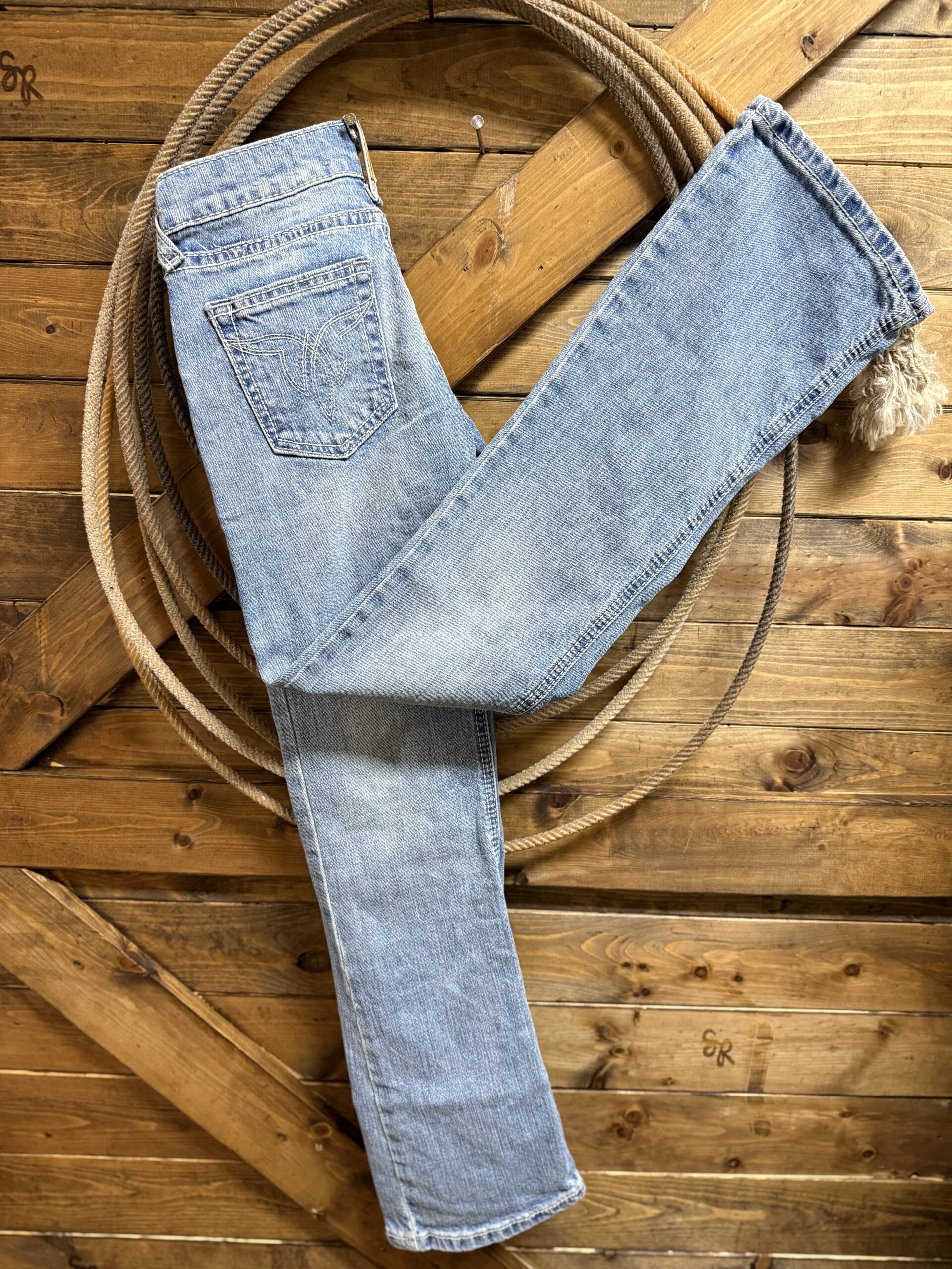 New season-New Jeans! The Maeve jean is made to get dirty outside or look cool in school! Either way the fit is super comfortable with a stretch fit. This allows the jean to move with you regardless of your adventures. Perfect light wash with the cutest back pocket. Plainly stitched with a boot stitch design with a thread color that matches the rest of the stitching. A boot cut denim made for every day wear!