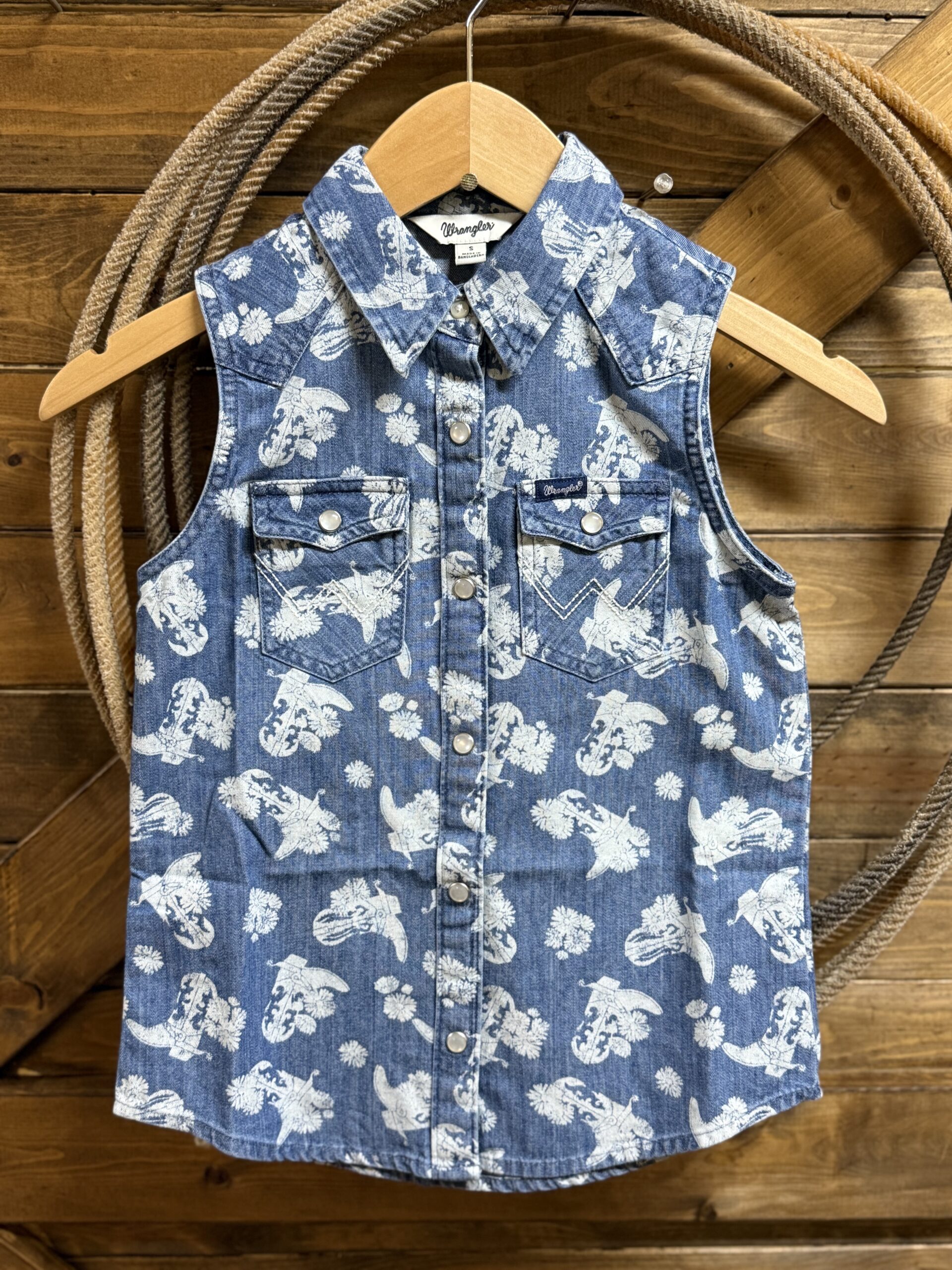 Girls Wrangler Denim Sleeveless Pearl Snap-Western Denim