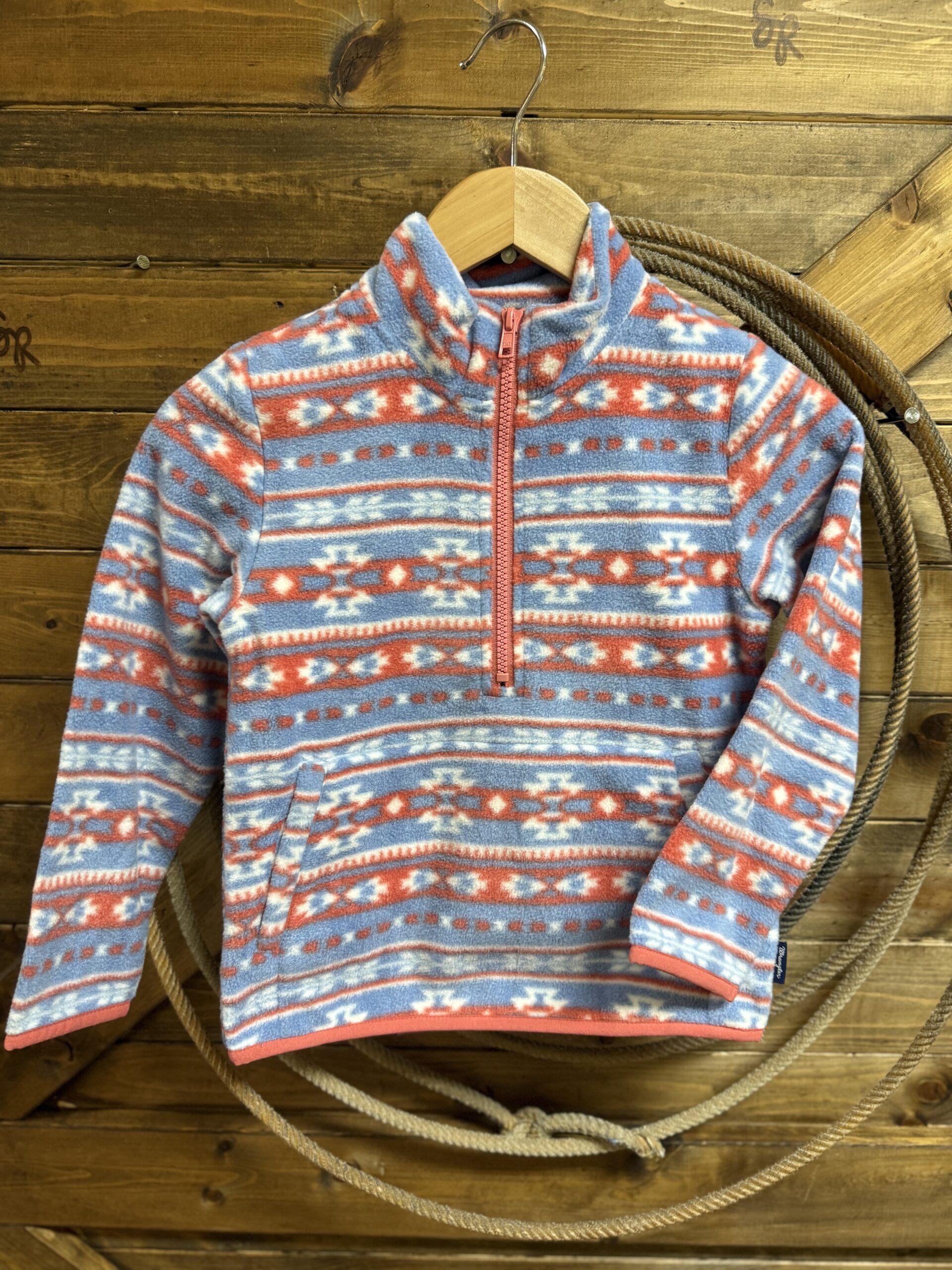 Girls Wrangler Sherpa 1/2 Zip Pullover Blue/Pink Aztec