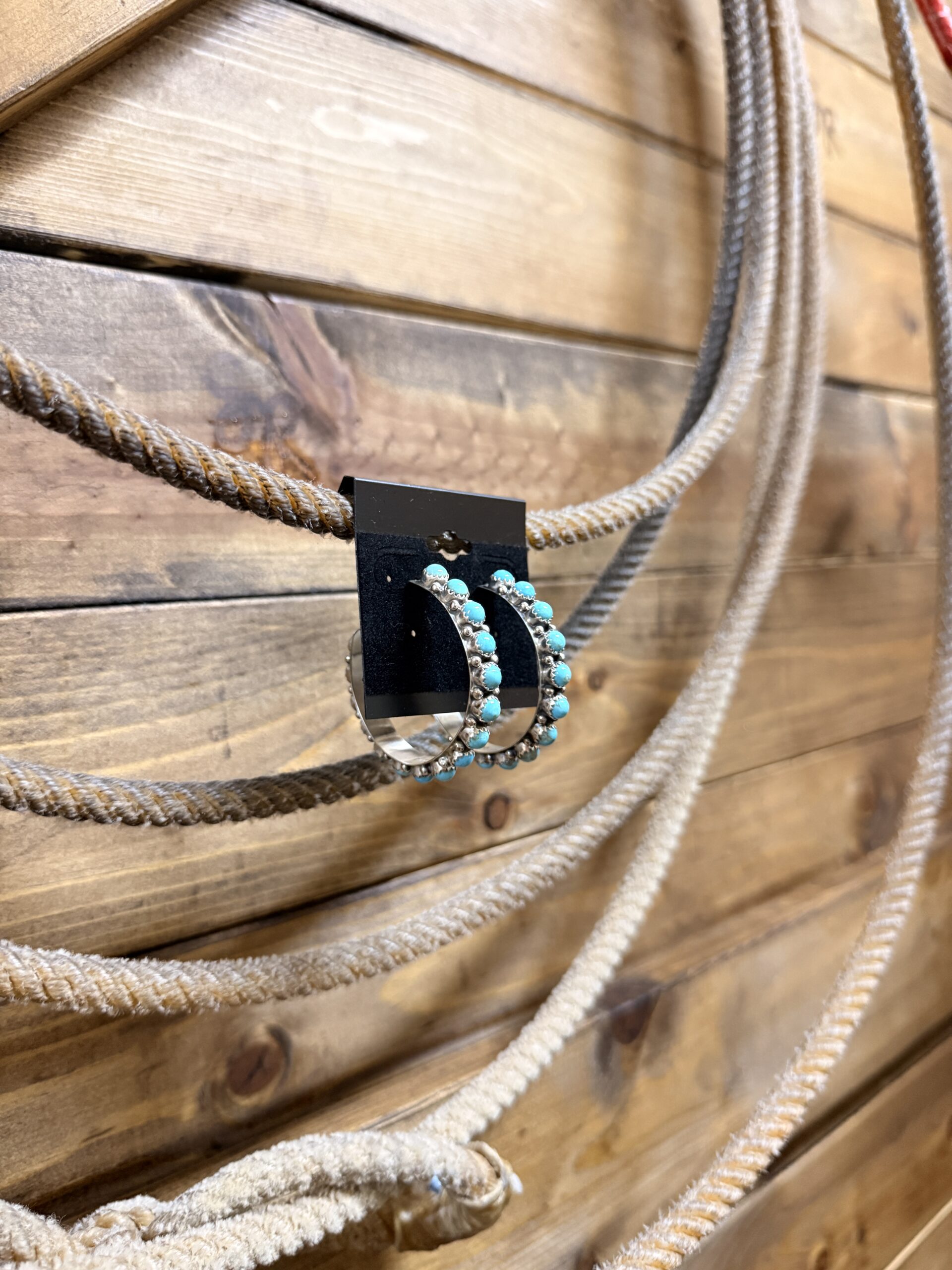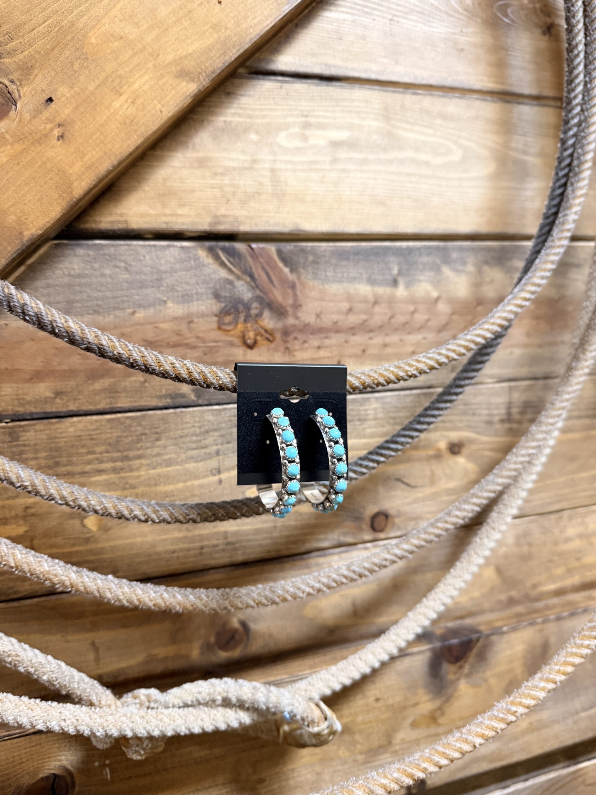 Authentic Native American made sterling silver and 16 stone hoop earrings