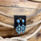 Authentic Native American made sterling silver and 10 stone turquoise drop cluster earrings