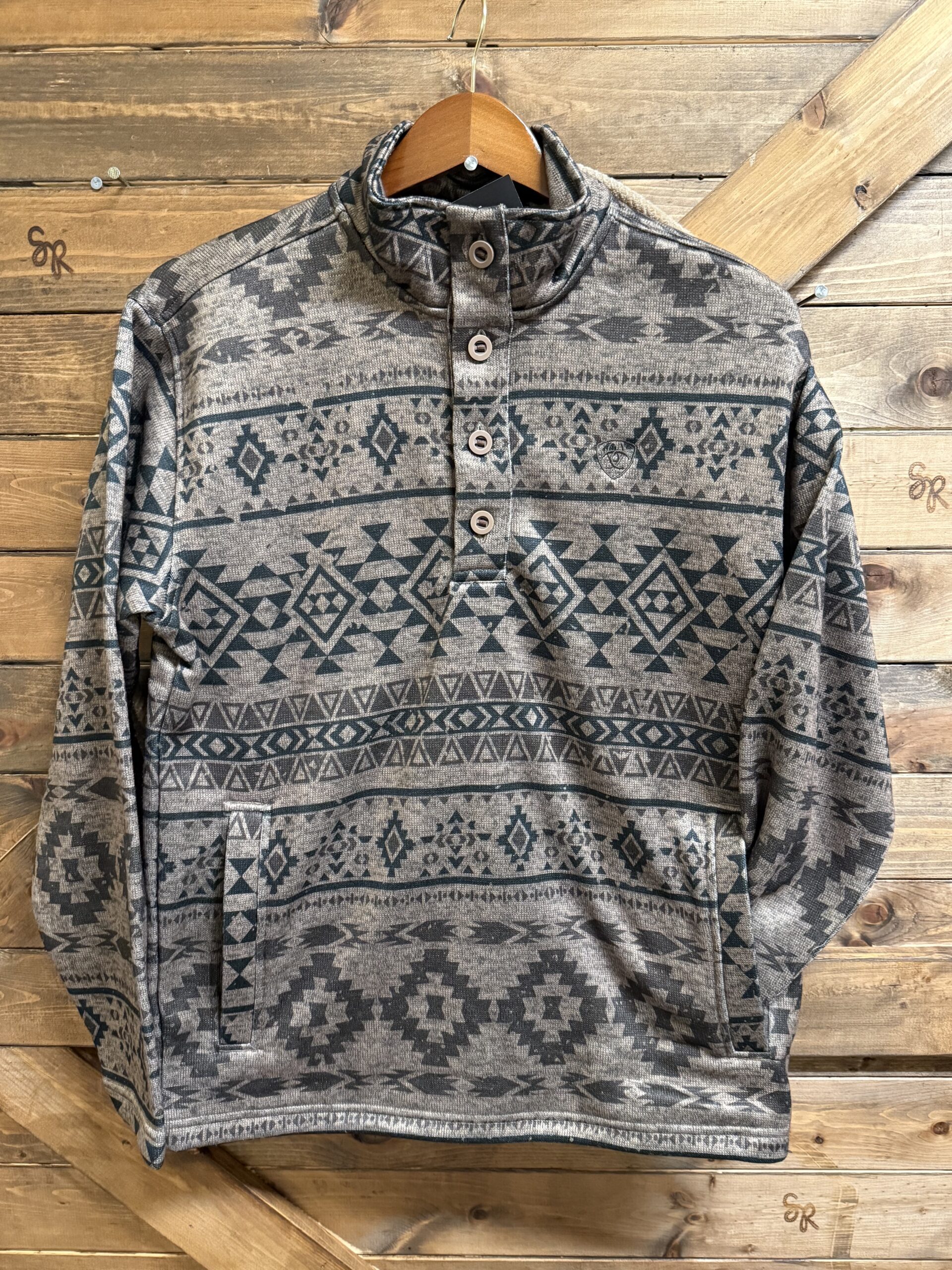 Printed pullovers are a fall favorite. The colors and pattern here are a great color combination. Light brown with a dark aztec printed all throughout. The 1/4 button at the neck features 4 tan buttons to adjust the opening to your liking. Single slit pockets are located on both sides. It’s lined with a thin layer of fleece lining for that little bit of extra warmth. Great look for many different occasions. Work, school, the office, running errands, the friends gathering, etc! Its pretty ideal for all things!