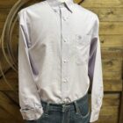 We have your back! We are a big fan of the wrinkle free classic fit button downs. Great classic fit in a light purple with a generous cut and extended lengths, features the most popular long lasting wrinkle free material! The sleeves and arm areas are both designed with greater arm mobility allowing you to move more freely. The front features classic white buttons down the front, pinning down the collar, and again at the sleeve end on a 2 button adjustable set. An open front pocket is situated on the left side of the chest with the Ariat logo embroidered in the corner. The look and fit are both designed to fit your lifestyle and wardrobe the same. Made for everyday wear to the office or special events and occasions as they arise. It’s truly as easy to care for as it is to wear!