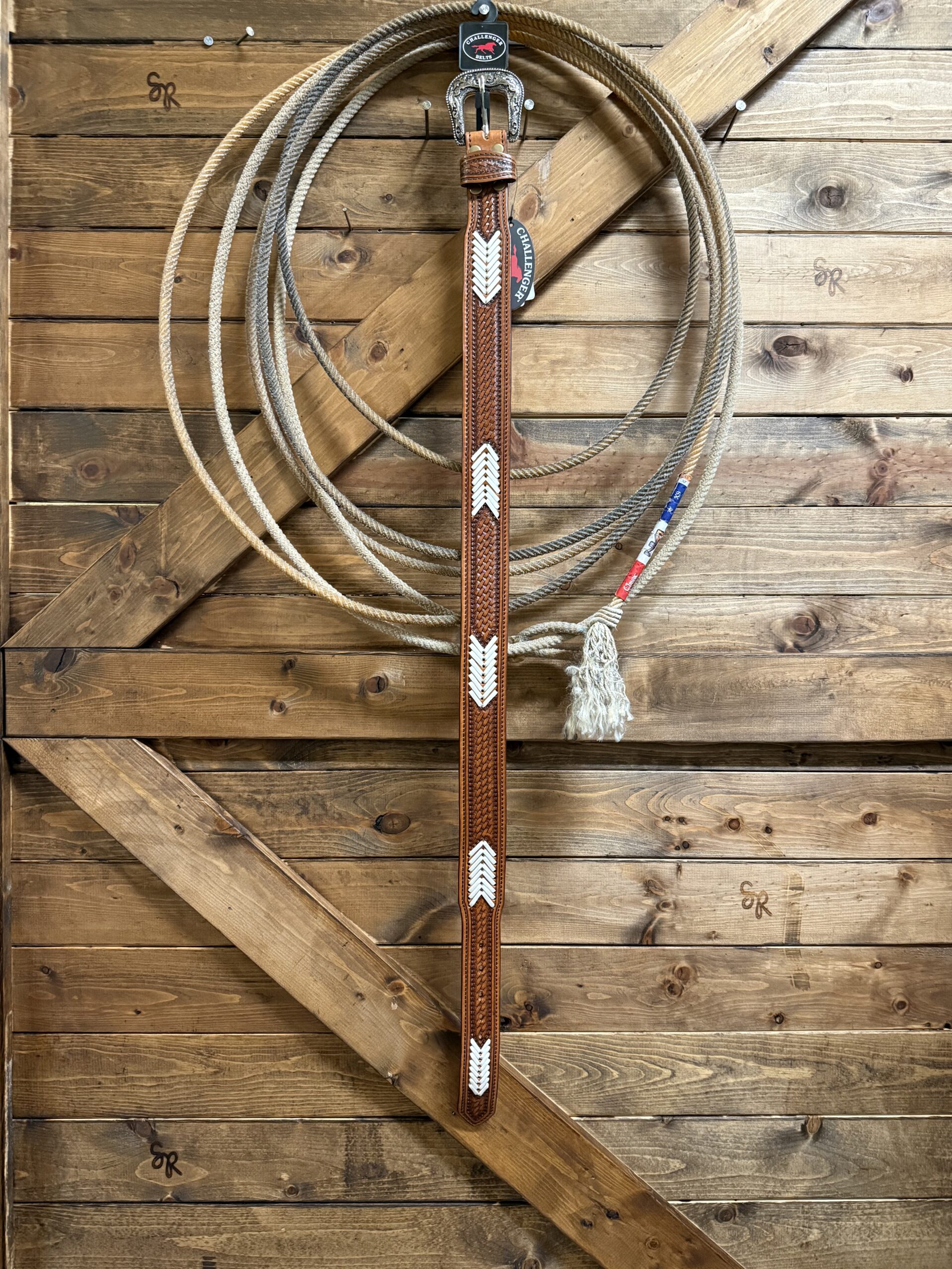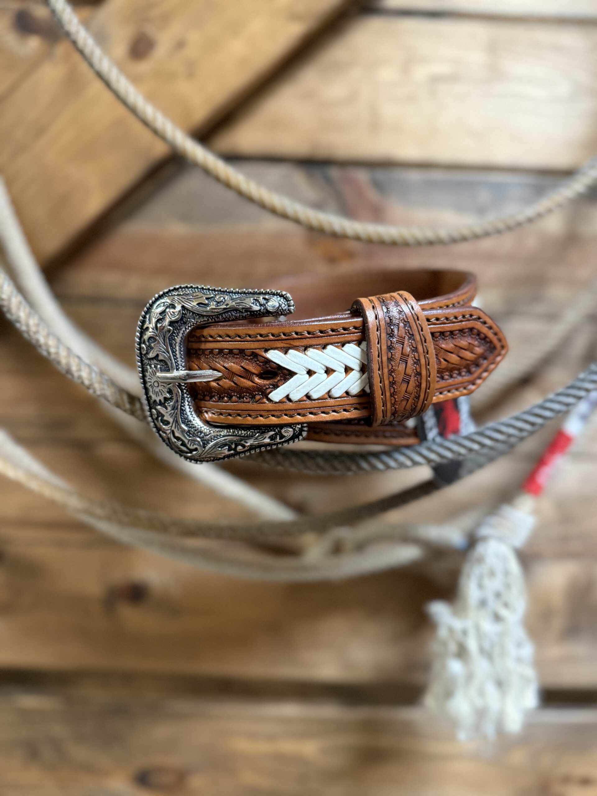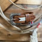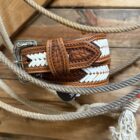 Mens basketweave leather belt with sections of rawhide. The belt measure 1 3/4″ wide.