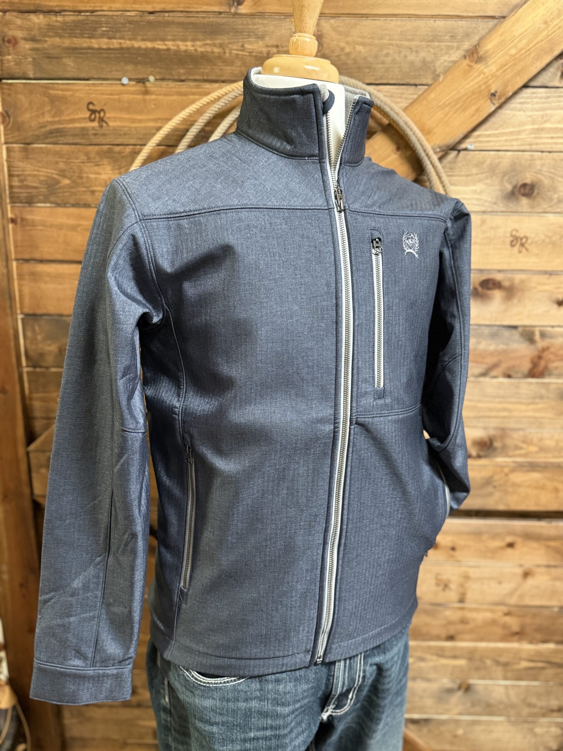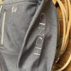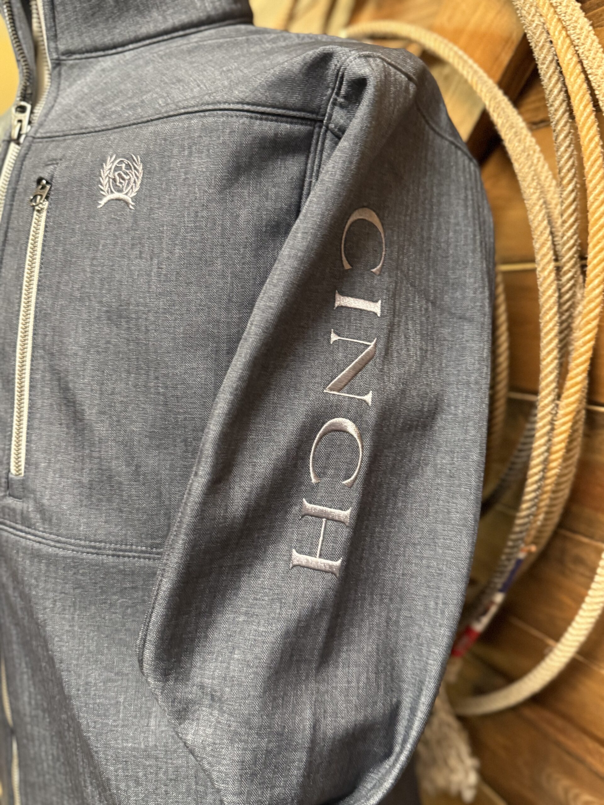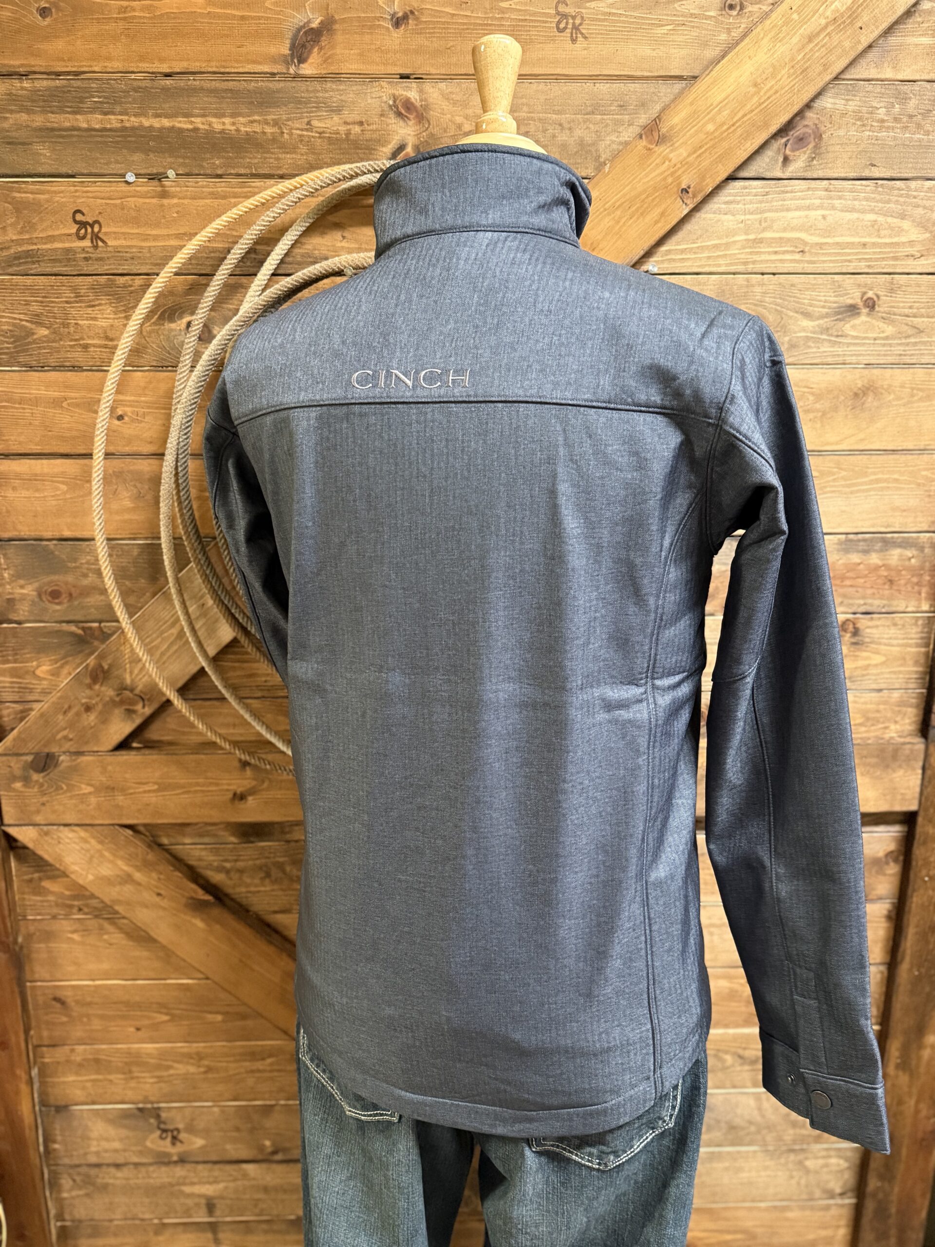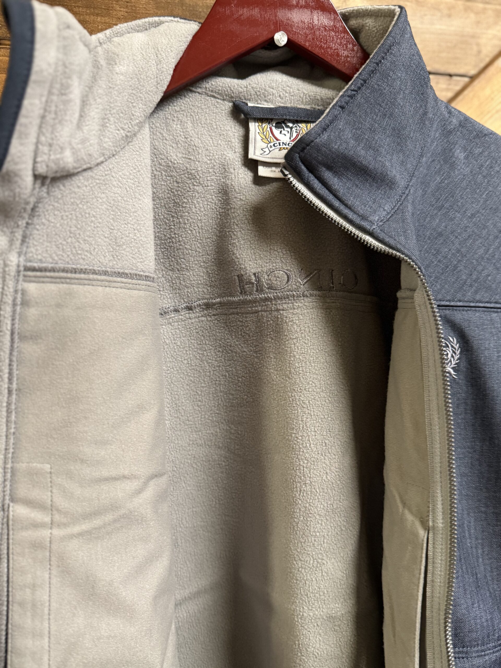 The bonded jackets are a favorite to many! The combination of features make it an easy jacket to wear and feel comfortable in. The outer shell made of a performance material that is versatile and easy to care for allowing for wear during all of the seasons. It’s equipped with storm defense technology that allows for wind and water resistance. The lining is that of a warm lightweight grey fleece. The front is made with 2 zipper pockets, one on each side of the full length zipper, and a vertical zipper pocket that sets to the left on the chest. Next to it, the Cinch logo is displayed in a matching grey thread. Cinch is spelled out across the back between the shoulders and down the left arm. The stand up collar starts the zipper that runs the full length of the jacket. If you don’t want big a bulky, this bonded jacket is your style.
