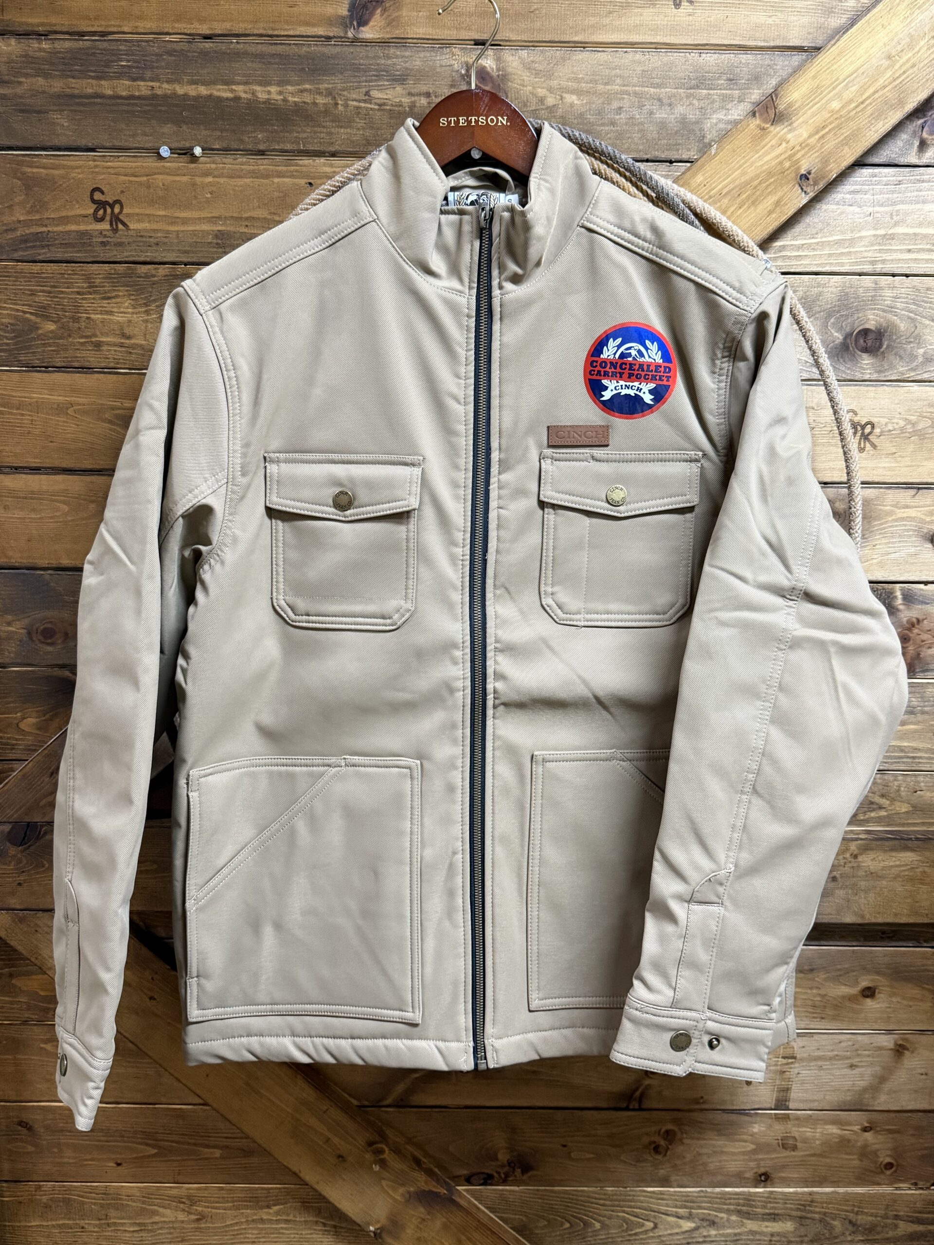 The bonded jackets are a hit every year! Throw in concealed carry as a feature and you have an ideal jacket. Pretty stone colored soft shell jacket with storm defense technology. Designed to be water and rain resistant with quick dry features. The soft outer shell is a zipper closure with large square pockets on each side of the chest. The close on a single snap button flap. The hand pockets on each side are a deep square slip pocket. Lined with a quilted liner for a very comfortable and warm fit. A jacket that is made to stand the cold temps and elements in whatever situation you may find yourself in. Stay warm!