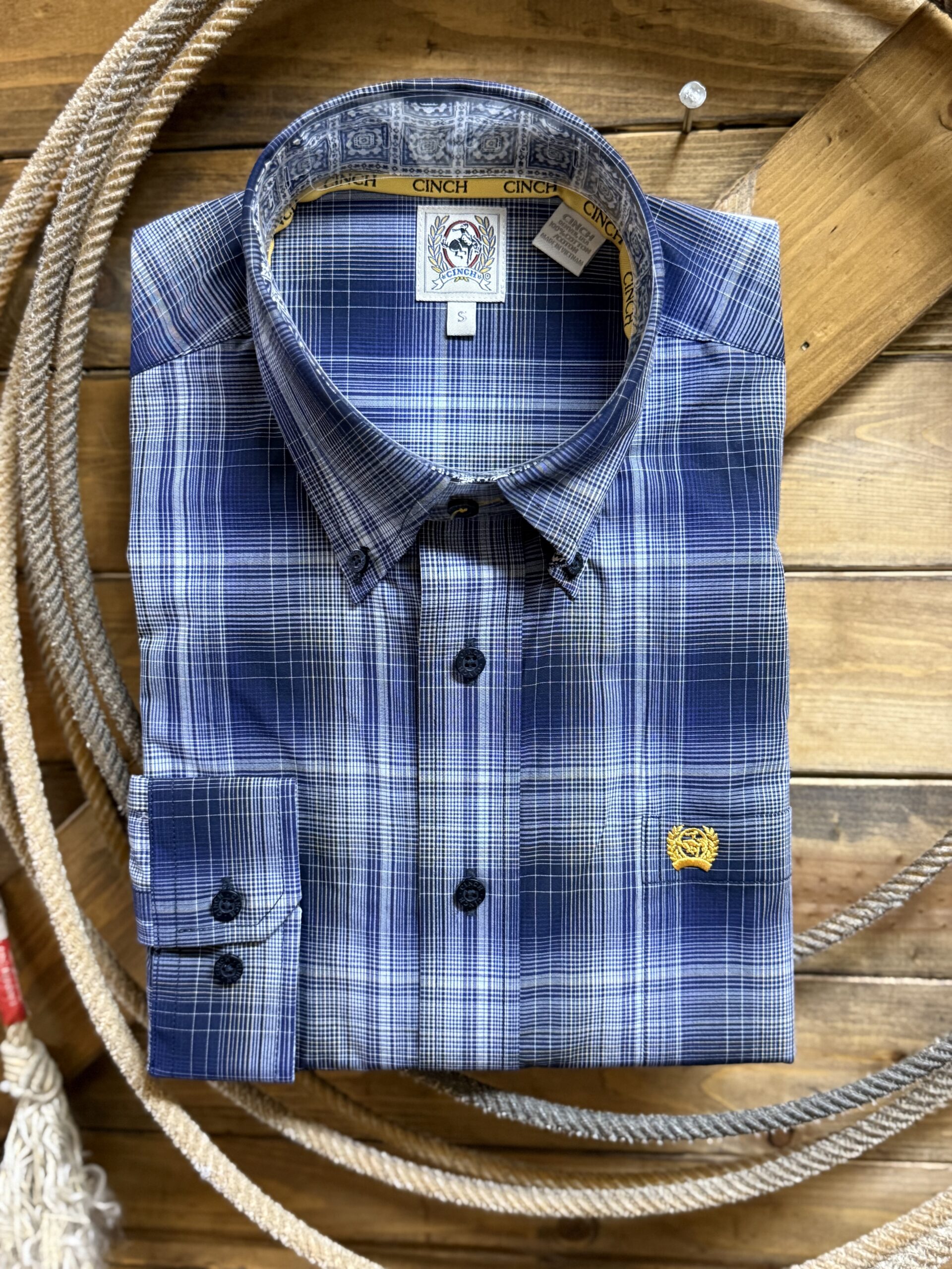 A good plaid is a must have and this one is it! Dark navy plaid, the kind of plaid that’s heavy and near solid, features the slightest dull yellow stripe within. So faint, the yellow can hardly be noticed. Color matched buttons go down the front, pin down the collar, and adjust the sleeve on a 2 button set. Neatly situated on the left side of the chest is an open front pocket with the Cinch logo embroidered in a golden yellow thread. It can be your dress shirt as easy as it can be your everyday shirt. If you like it, just buy it!