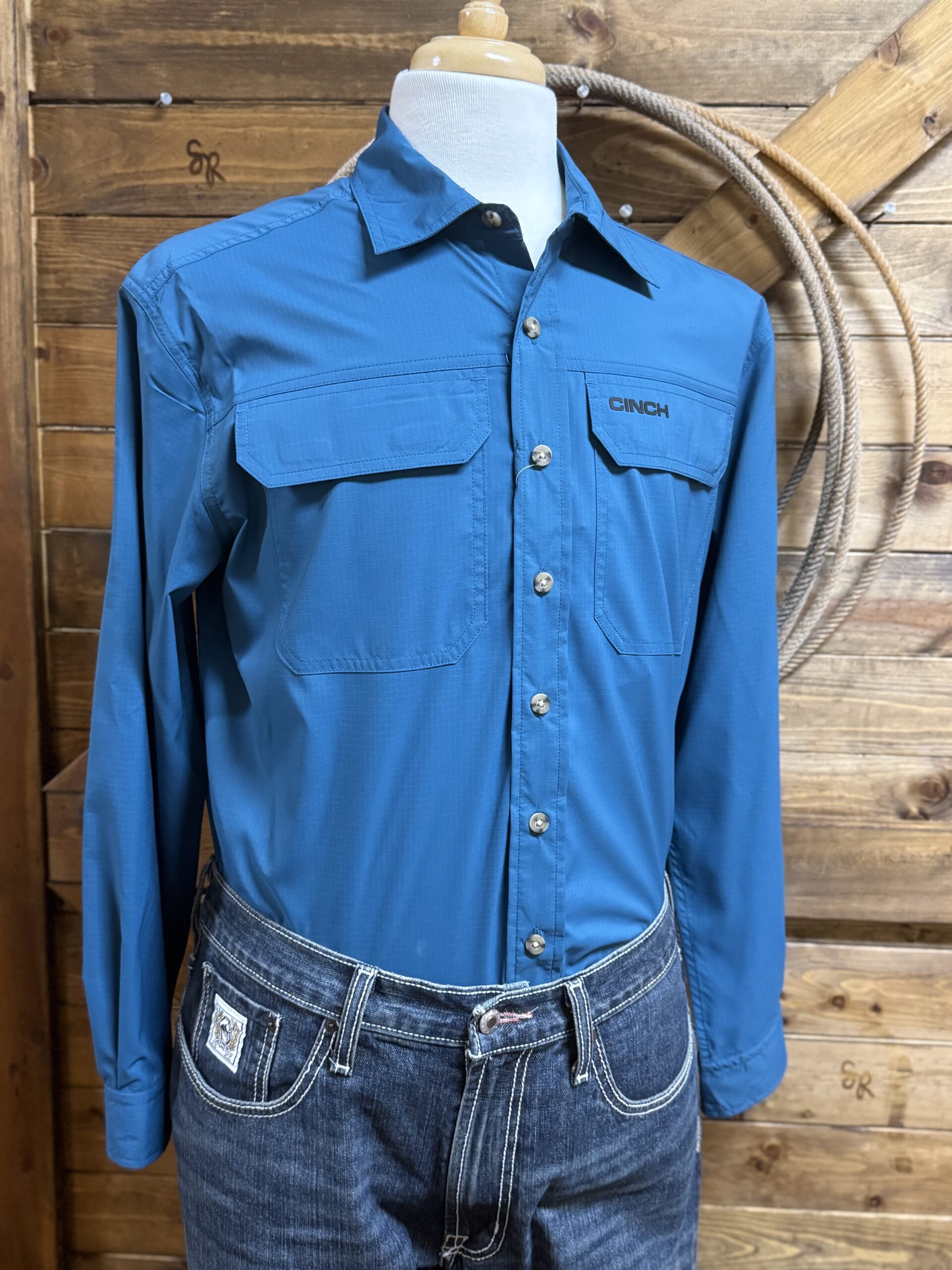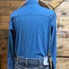 Performance shirts for the long sleeve lover. Very pretty dark teal performance button down. A great lightweight material that is made to work it. The wrinkle resistant feature makes it a need alone. Designed to wick moisture away from your skin and keep you protected for the uv rays, makes this a shirt for all seasons. Marbled buttons line the front and adjust the sleeve end on a 2 button set. The front features a front pocket on each side of the chest with at flap closure. A velcro connection secures the closure on each end of the flap, 2 for each pocket. The backside is made for air movement. A vent seam crosses between the shoulders on a full vent, no mesh, no perforated material. This allows for additional air flow that keeps your fit comfortable and dry for the duration. Arena days may be calling and so is this shirt!