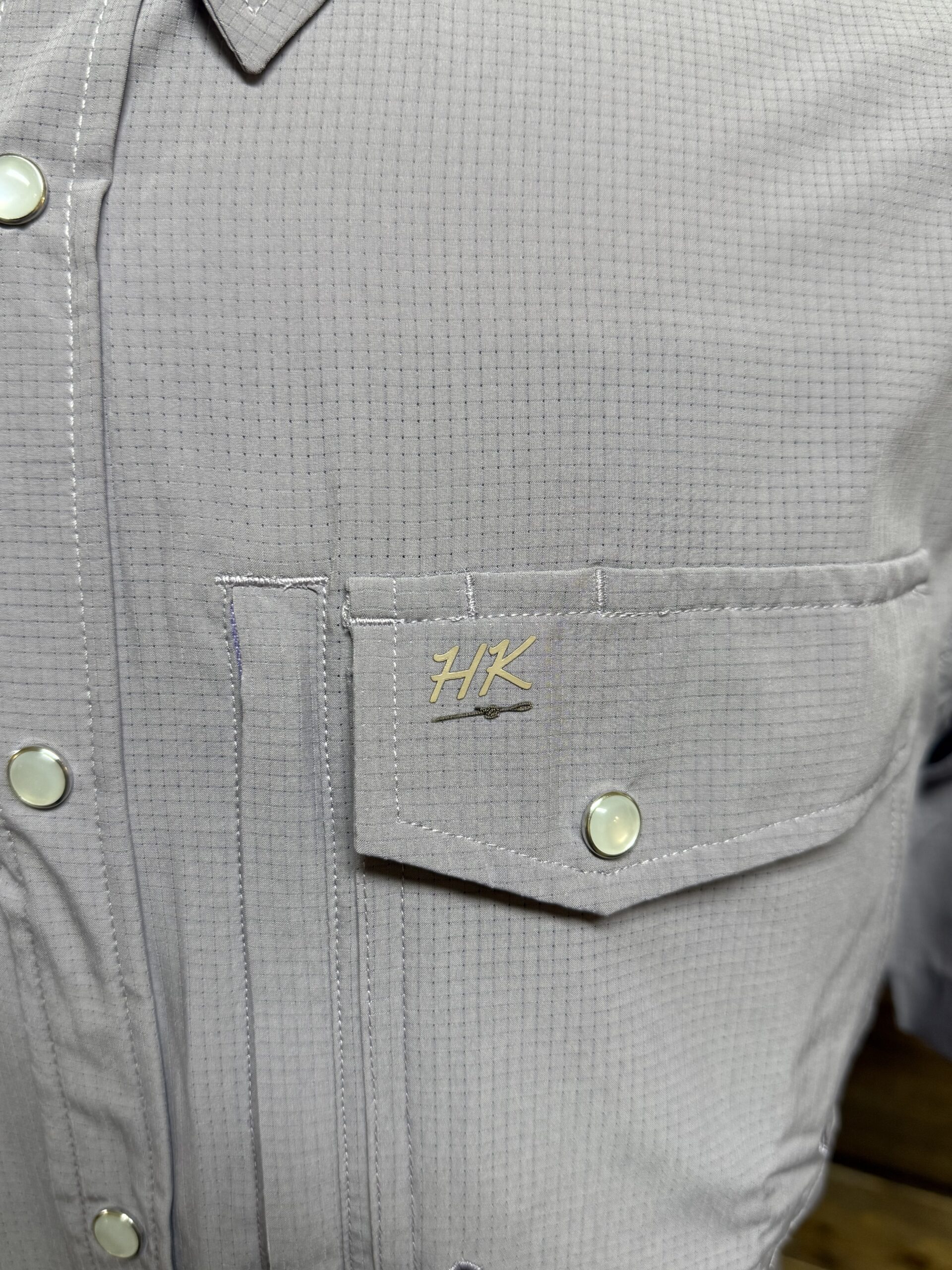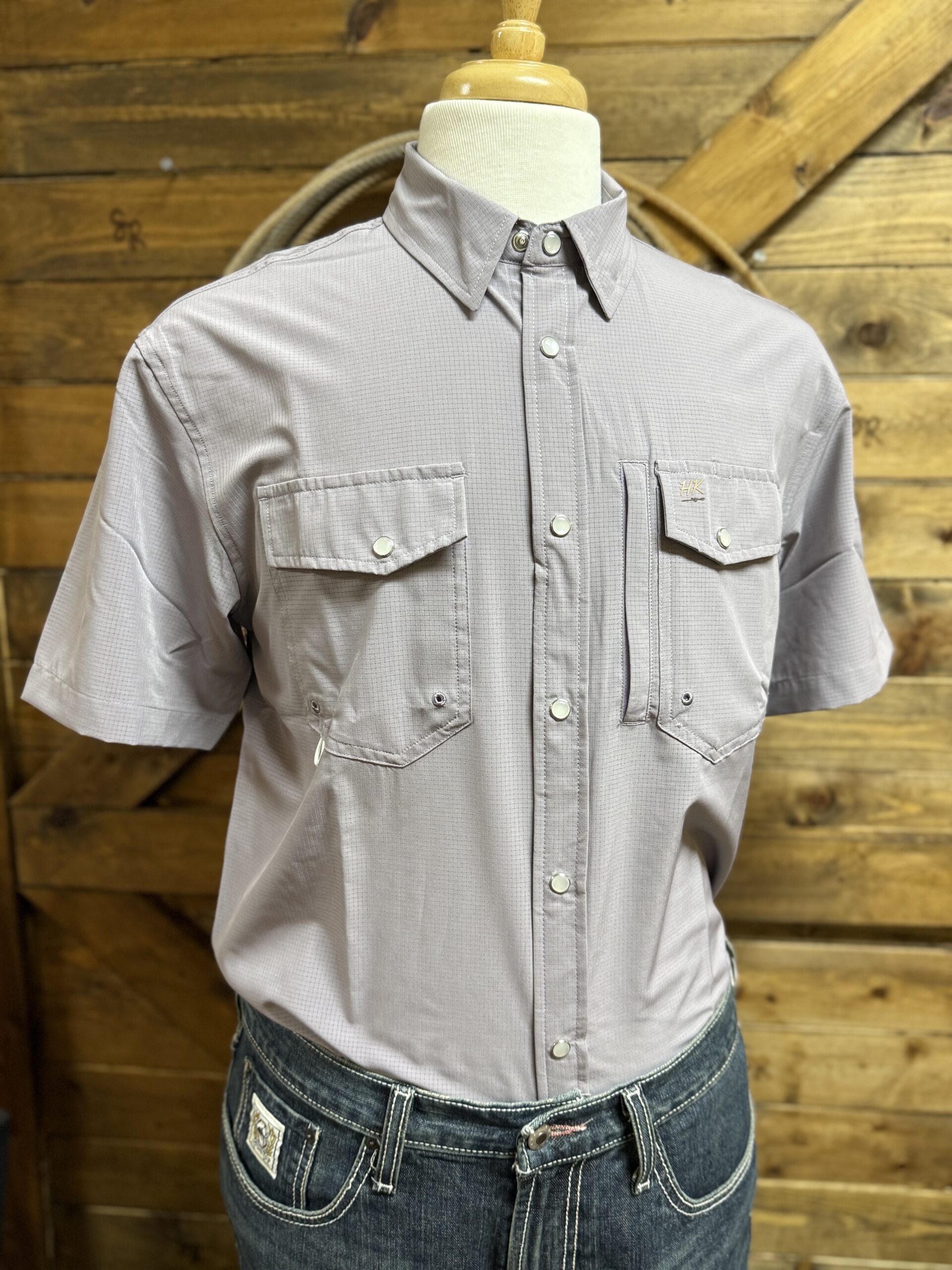 Perforated performance material! This is where a traditional western style and modern material come together. The smallest perforations in the material, known as RangeVent Fabric, create a waffle knit appearance. Traditional western features draw in the same western style you are used to. You will notice classic pearl snaps that line the front and close each of the double front pockets on a single snap. The left pocket is style with a vertical zipper pocket to the inside. It’s lined with a microfiber lens cloth, perfect for those dusty days in the arena:) A mesh vented seam crosses the back of the shoulders to create additional air flow. This helps keep you in a cooler and more comfortable fit throughout the day. Get yourself one to try! You look good in light purple!