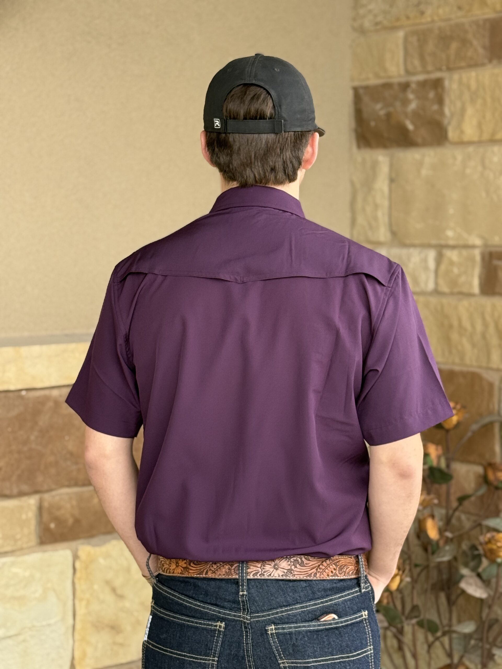 Short Sleeve-Stretch Performance-Waffle Knit-Button Down-Vented
