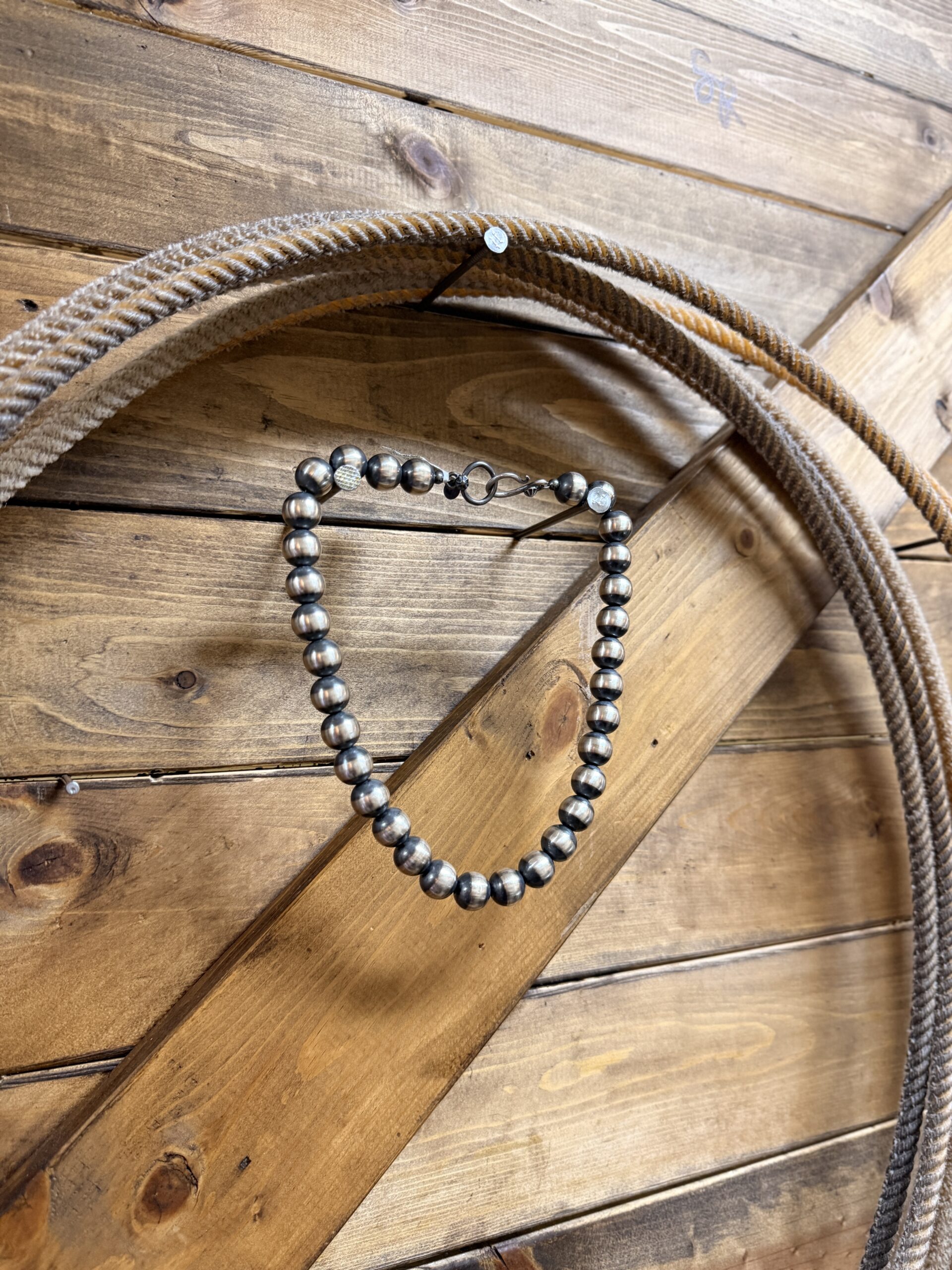 Authentic sterling silver Navajo Pearl beads strung on 16″ necklace