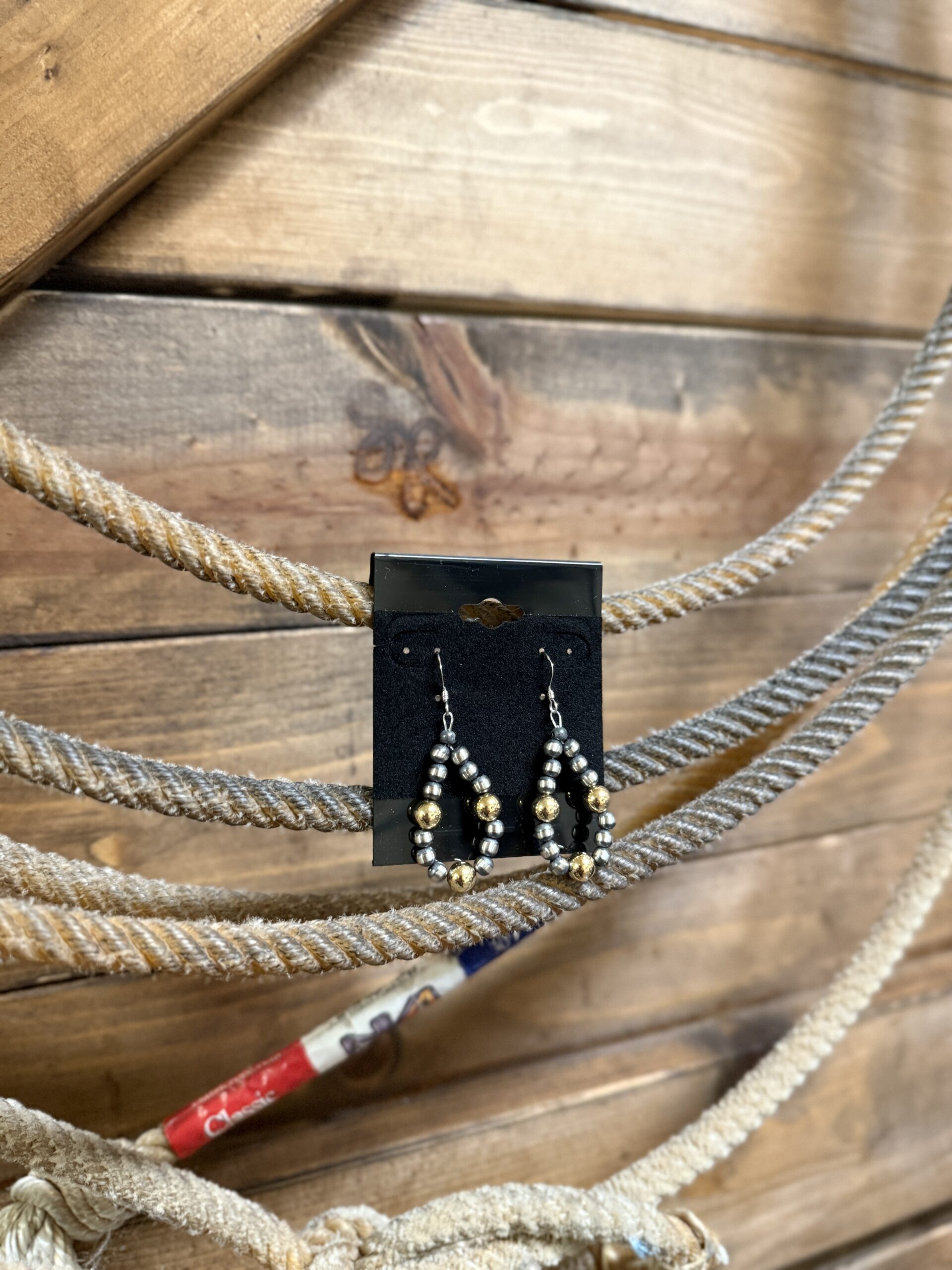 Authentic Navajo Pearls 4MM beads with 5MM 18K gold plated beads strung on teardrop wire dangle earrings.