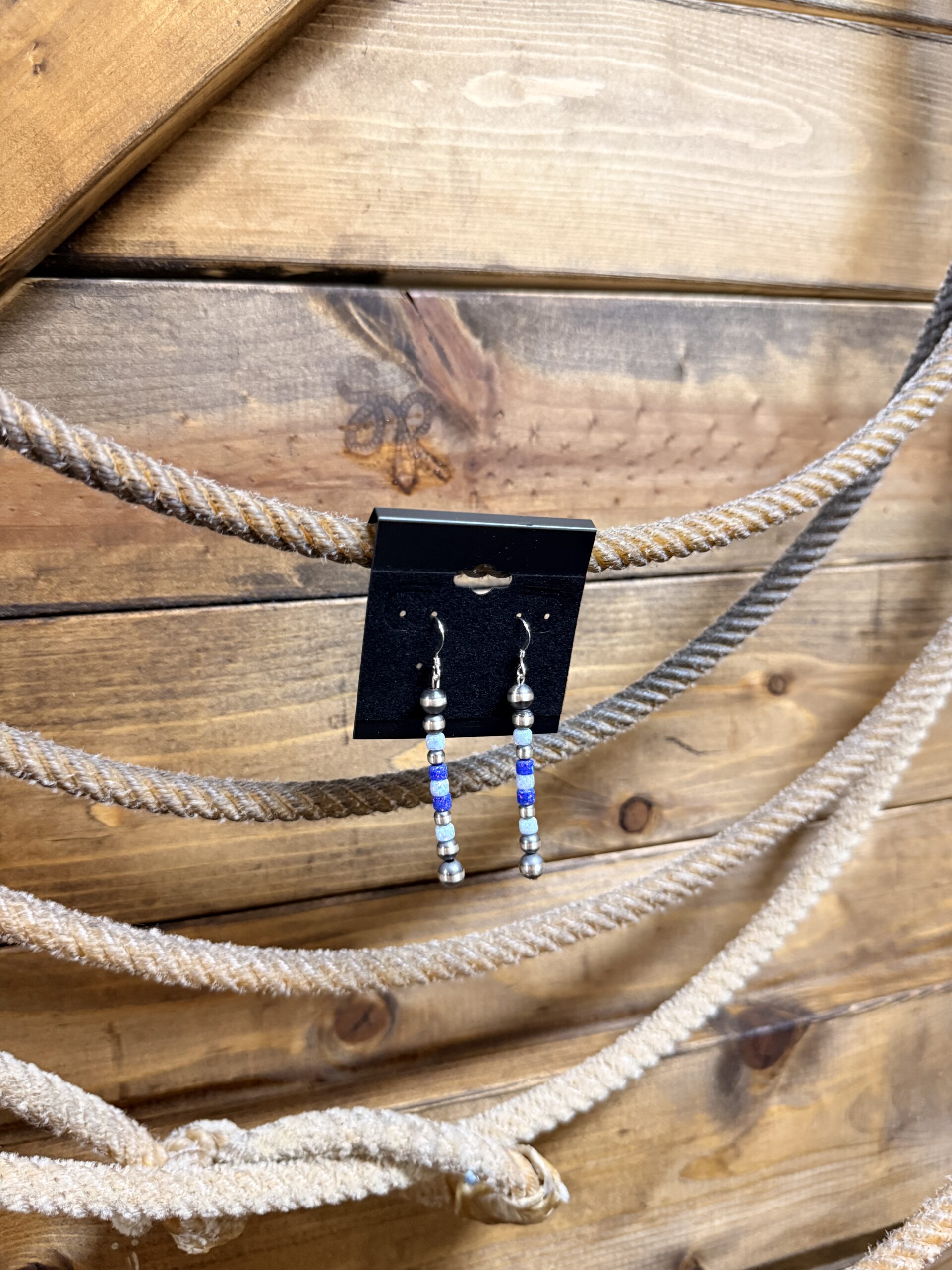 Authentic 4& 6MM Navajo pearls and opal stone hook earrings