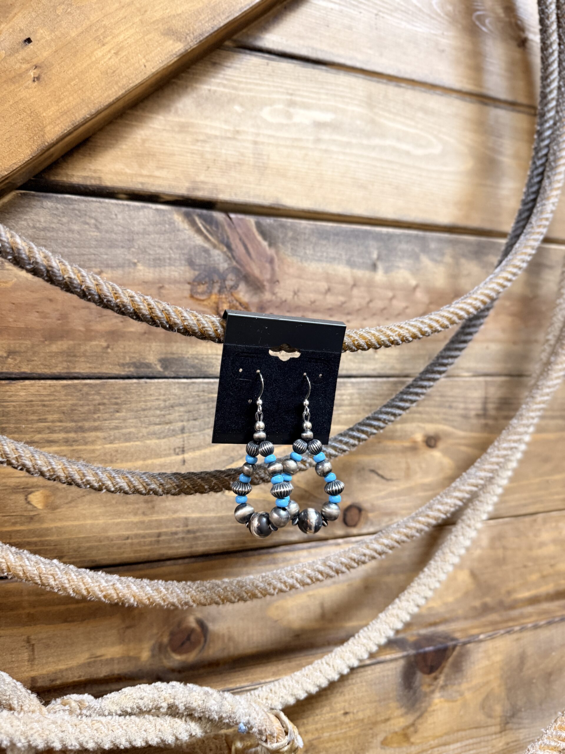 Authentic 5 & 10MM Navajo pearls, fluted beads, saucers and turquoise on medium teardrop hook earrings