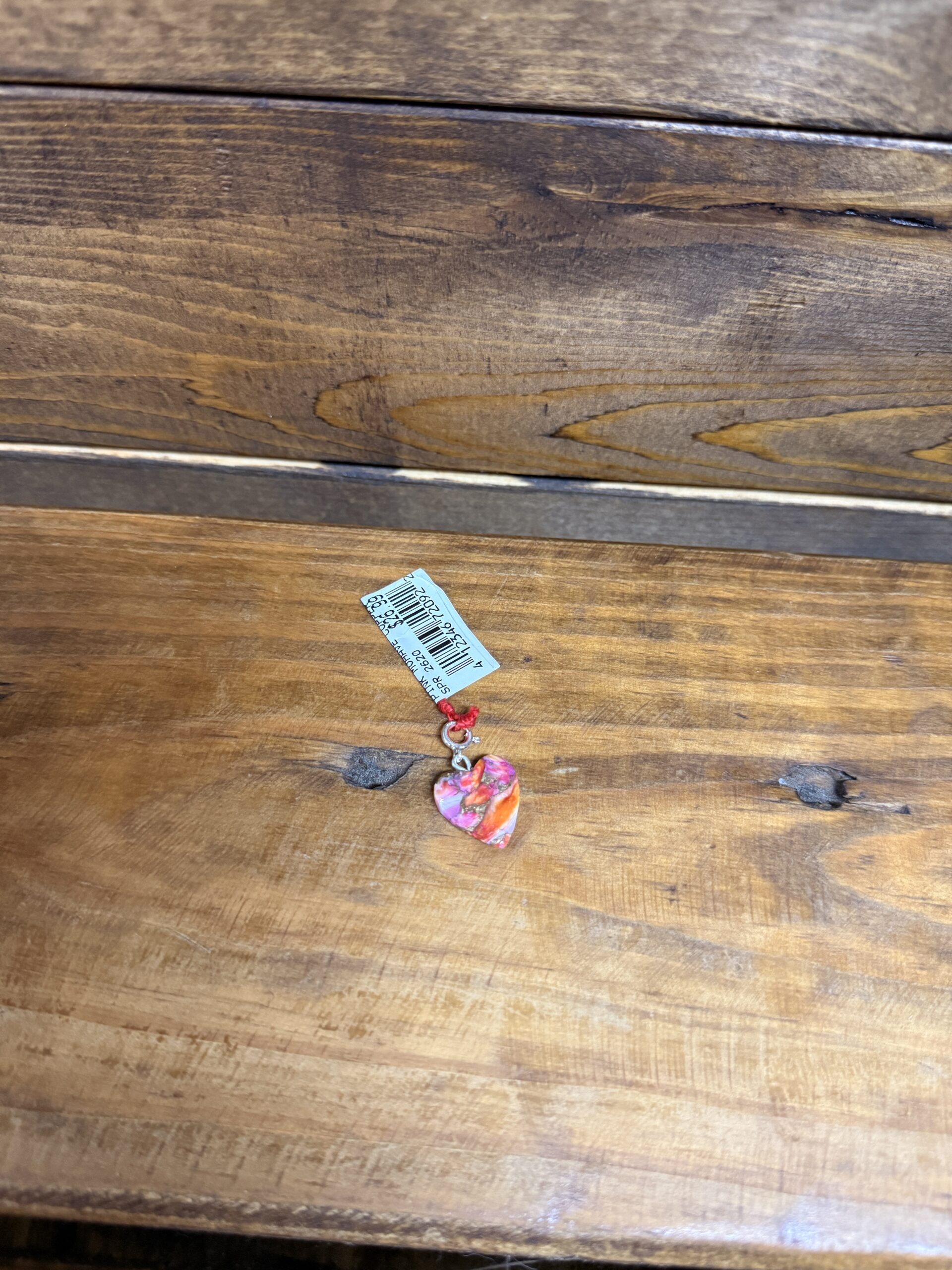 Authentic Native American made composite pink Mohave turquoise and copper heart charm