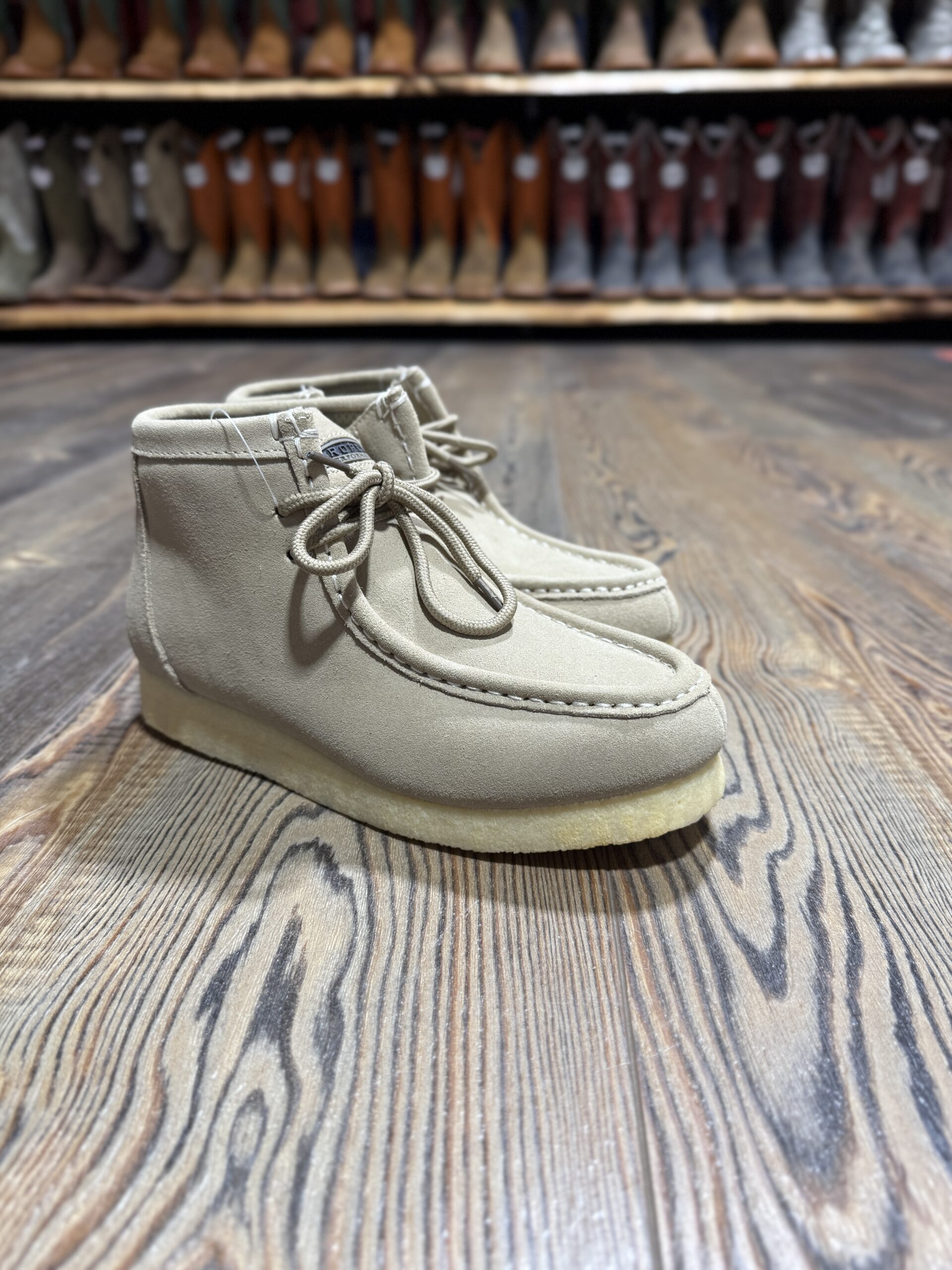 The western staple shoe you’ve known and loved for years. Step into the comfort of these high-top, lace-up, rough-out cushion gum sole shoes.