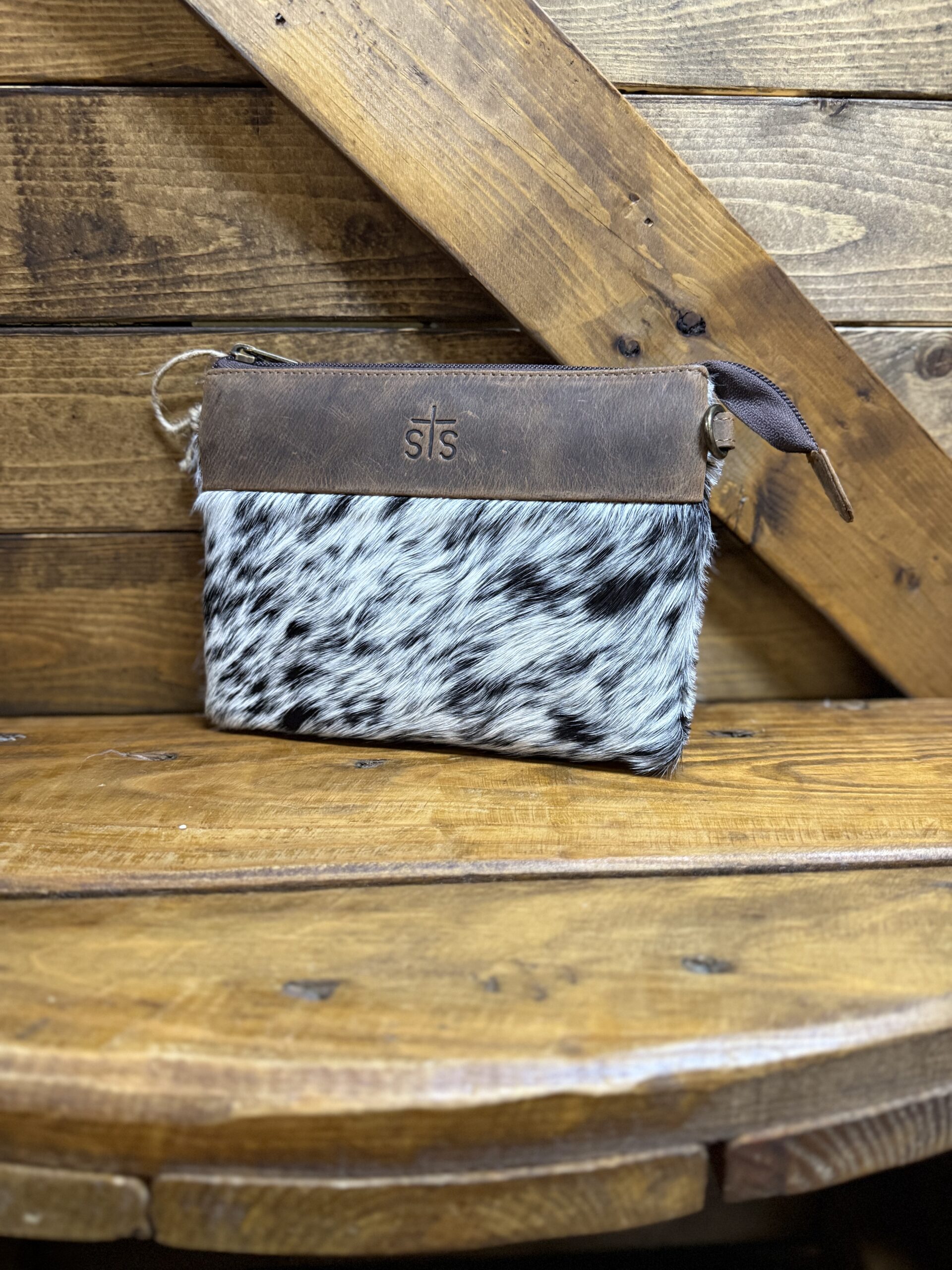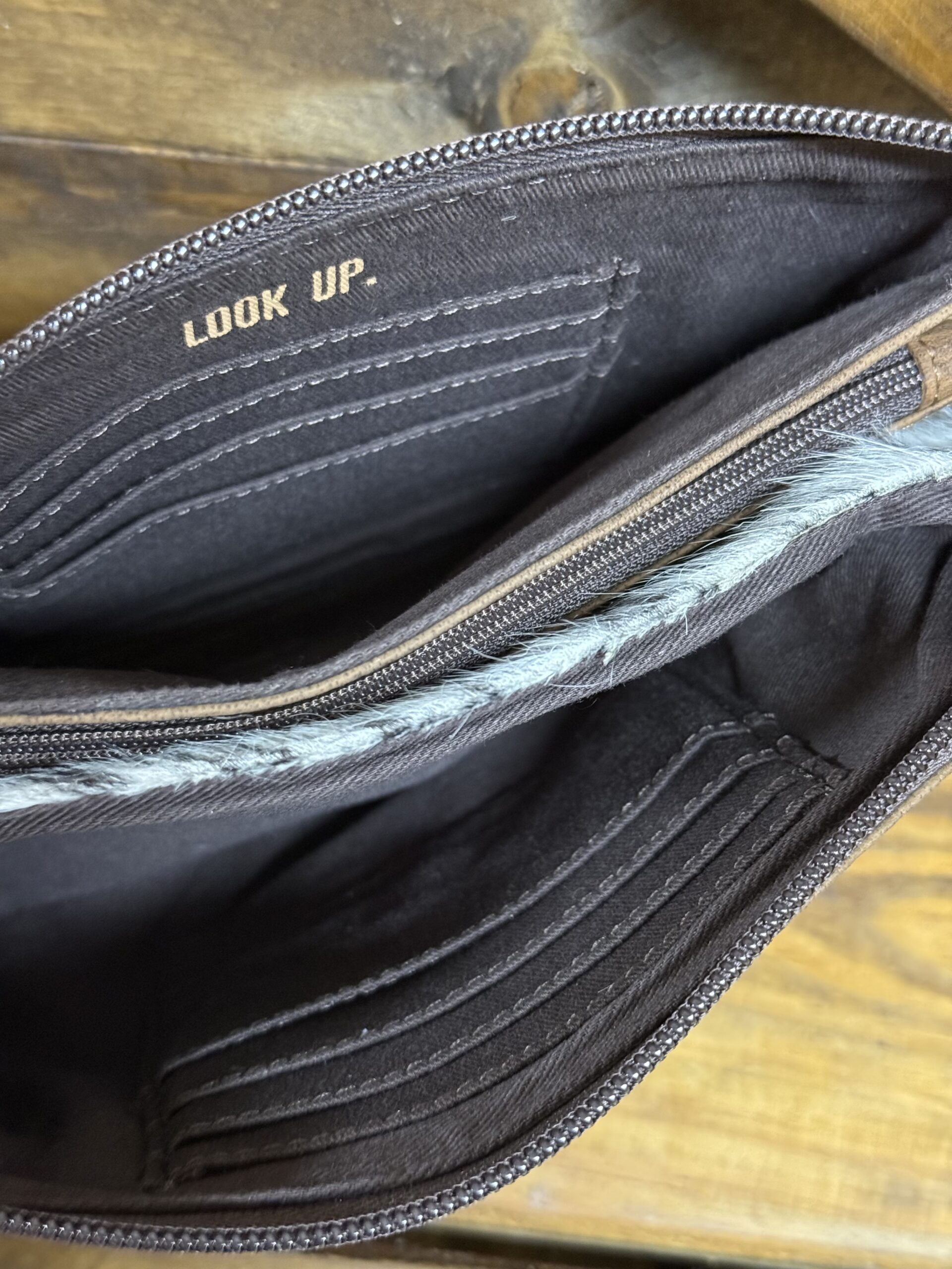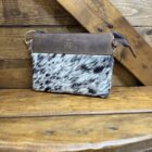 Say hello to the Rio Crossbody! It’s the perfect size to wear across your body. It features a beautiful cowhide across the front with a smooth leather trim along the top. The backside is the same leather with a blank canvas. The Rio closes on a single full length zipper across the top opening into two separate compartment split by a short zipper pocket. Each of the compartments are equipped with card slips on one side leaving the rest a single compartment. The center zipper pockets sets a bit lower in stature splitting the two larger compartments. It’s open and ready to catch all. The strap is easily attached and removed on opposite corners of the bag. Serving as a small clutch or crossbody, it’s plenty useful and easy to tote.