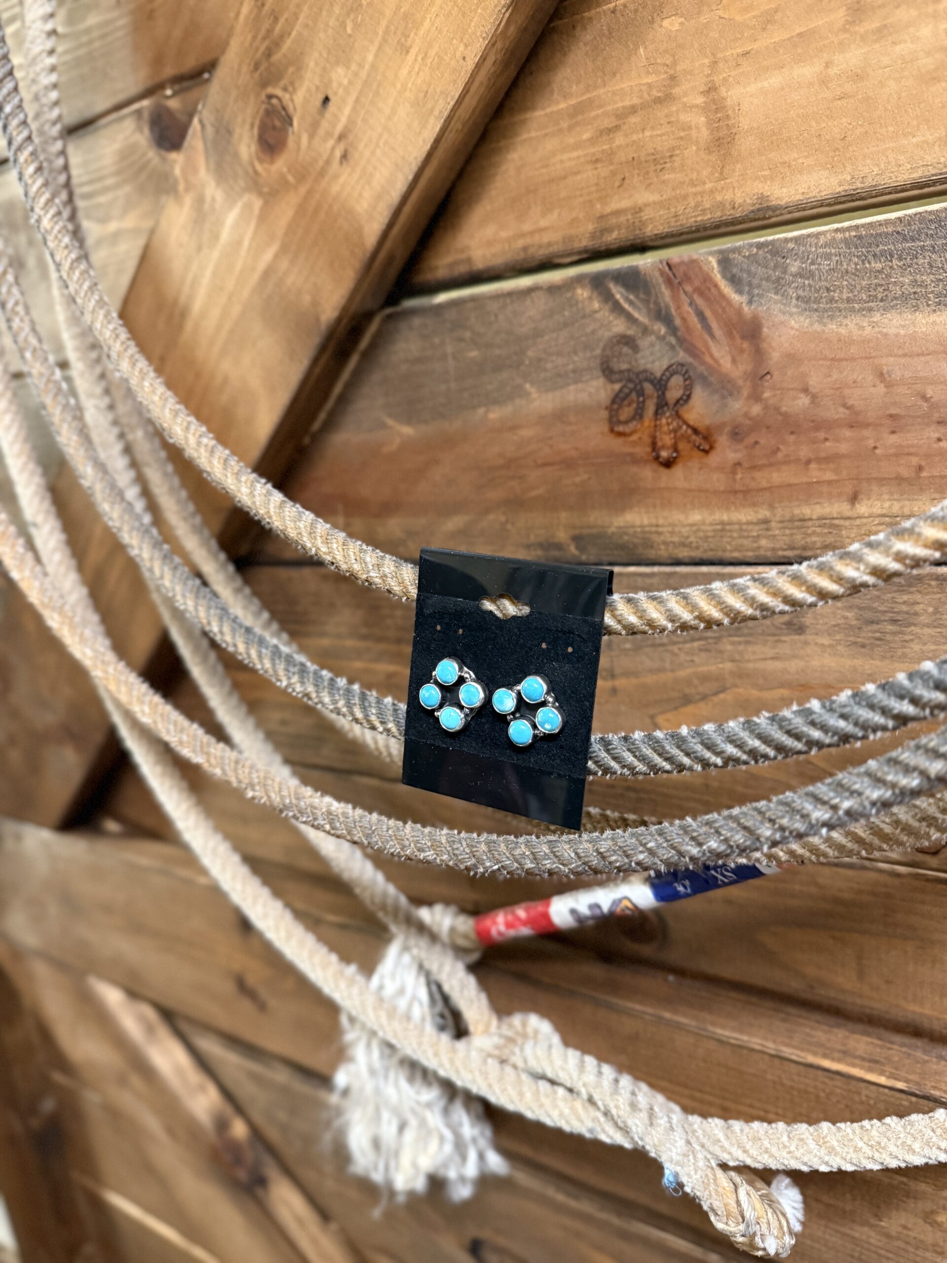 Authentic Native American made sterling silver and turquoise 4 stone cluster post earrings