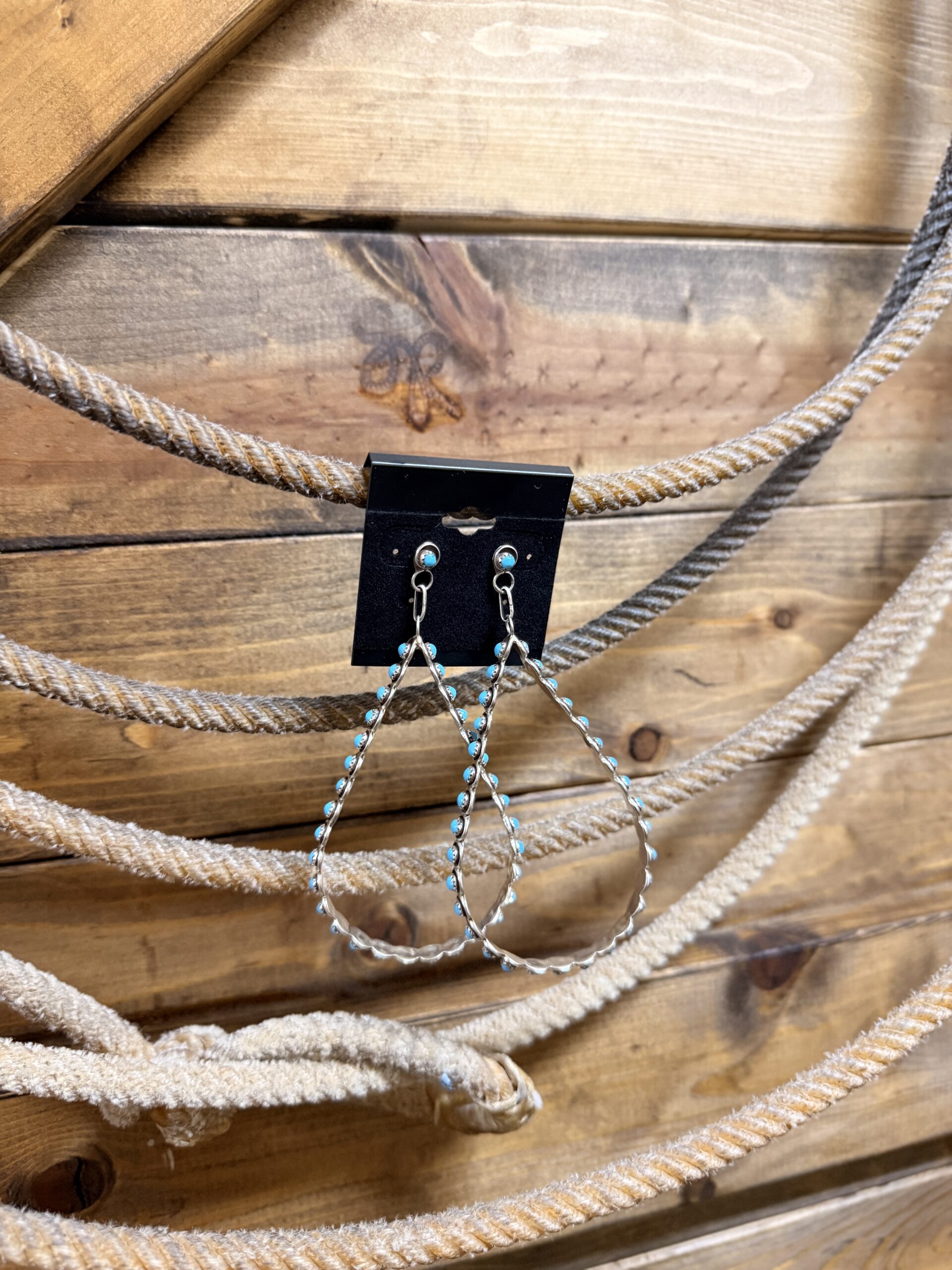 Authentic Native American made sterling silver channel edge 33 stone turquoise snake eye extra large teardrop post earrings.