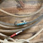 Authentic Native American made sterling silver 3 wire band with 6 turquoise stones framed with melon seed conchos.