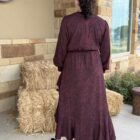 Python is in and you should be in this dress! The Royale color in the print is so pretty. Long sleeve sheer like material, dress with a ruched end capping the sleeve length to mid arm. A ruffle at the top of the shoulder makes the sleeve cut a little dressier and full. Beautiful v neck line comes down to a cross hem meeting at the ruched waistline creating. comfortable and slightly adjustable fit here. The high lo cut leads a higher cut in the front with a pretty wide ruffle trim. Perfect for that event you just can’t find anything for! Its pretty, dressy, and styled right!