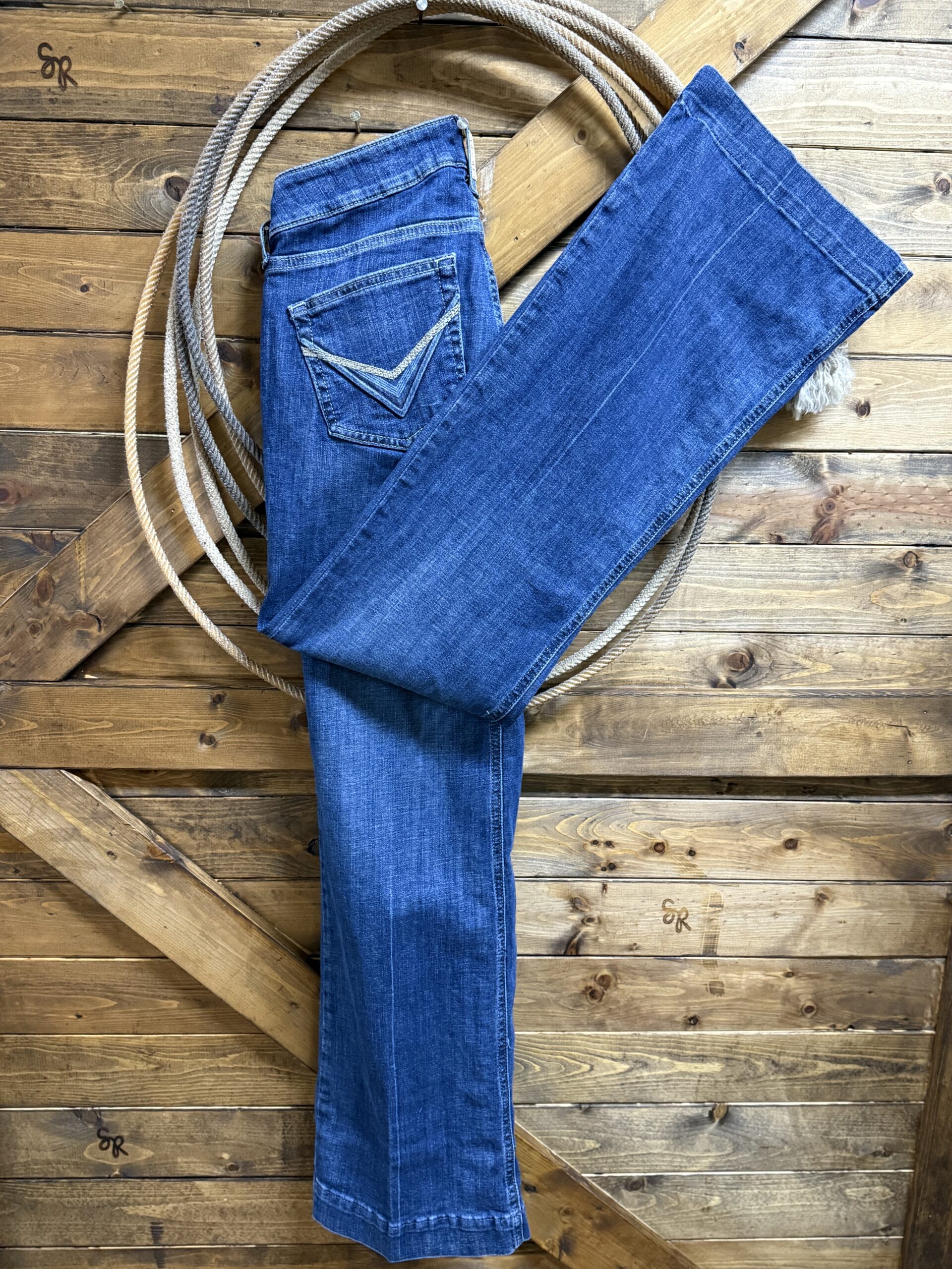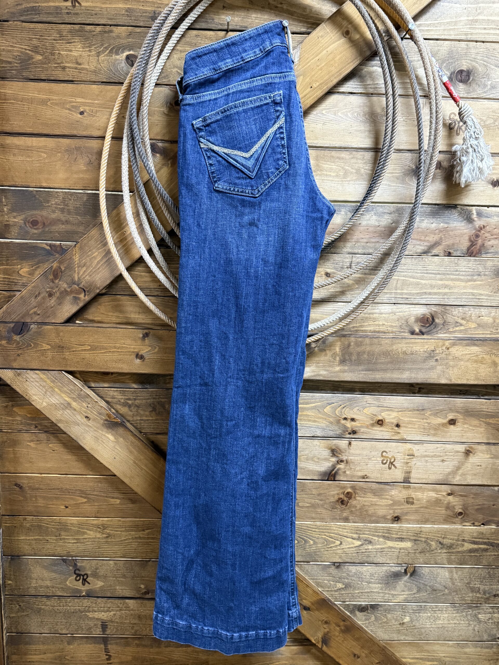 Lelani comes in our best selling trouser fit. The perfect rise trouser is a great medium wash denim with the same continuous wash throughout the jean. The back pockets are detailed with a two tone pattern consisting of a tan thread and pressed denim combination. The trouser fit is designed to work with you in a contoured waistband that offers a flexible fit. Perfectly pairs with your favorite tops for a classy look in the classroom, riding arena, or a night out on the town.