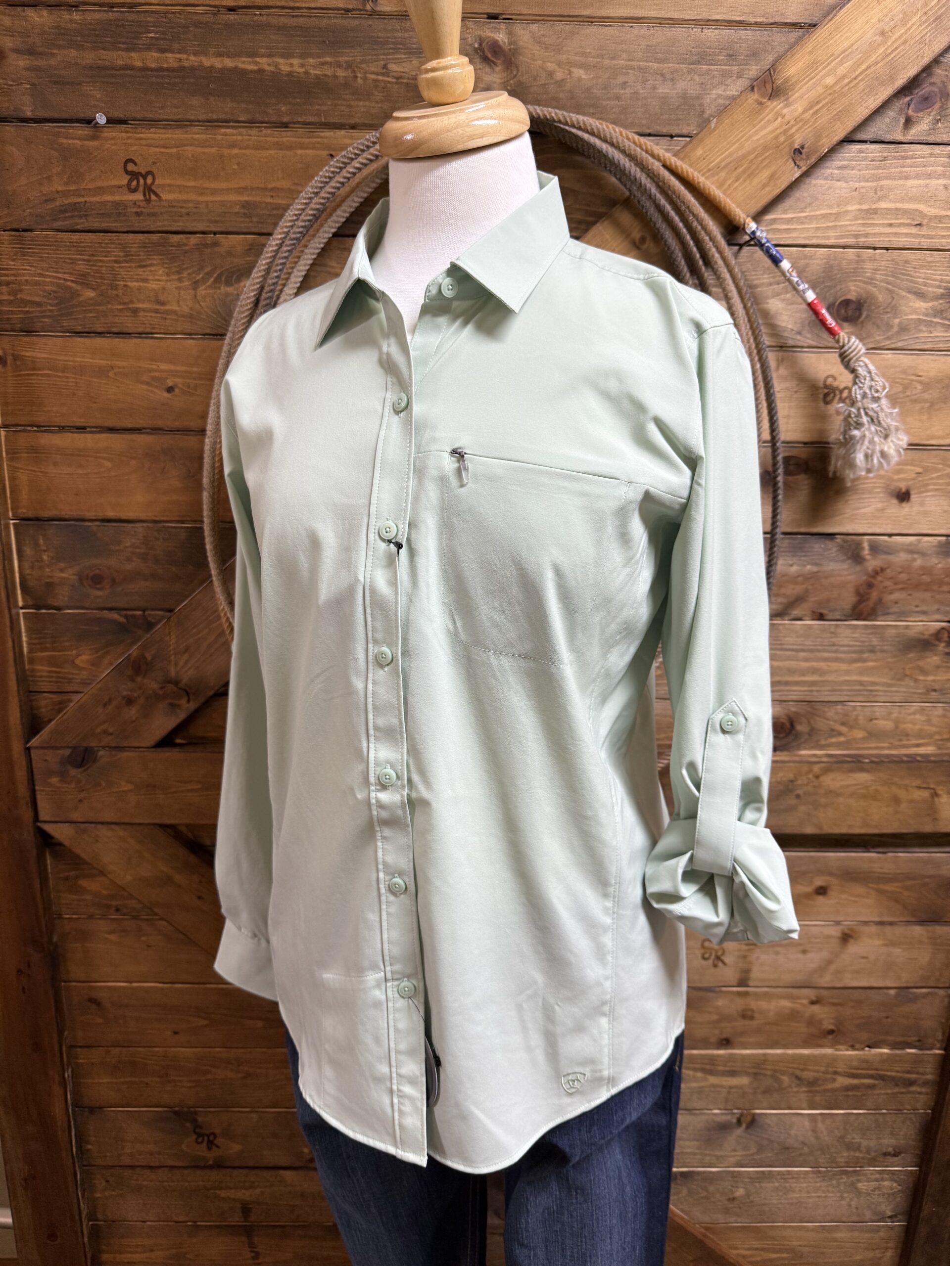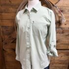 Womens VentTek….the shirt of summer! Super soft and comfortable performance material that is packed with all of the extras for comfort! Pretty silt green in color with color matched buttons lining the front and securing the sleeve ends. A small zipper pocket is located on the left side of the chest to securing all of your small chore essentials. The material is the kind that feels good on your skin. In the meantime, it’s busy wicking any moisture away from your skin to keep you in a cool and dry fit. A mesh panel can be seen across the back of the shoulders creating the maximum air flow for a dry comfortable wear while being protected from the suns rays. Stretch within the material is designed to allow the shirt to move with you throughout the day regardless of your events. The fit is a favorite and we sure understand why! Get yourself one!