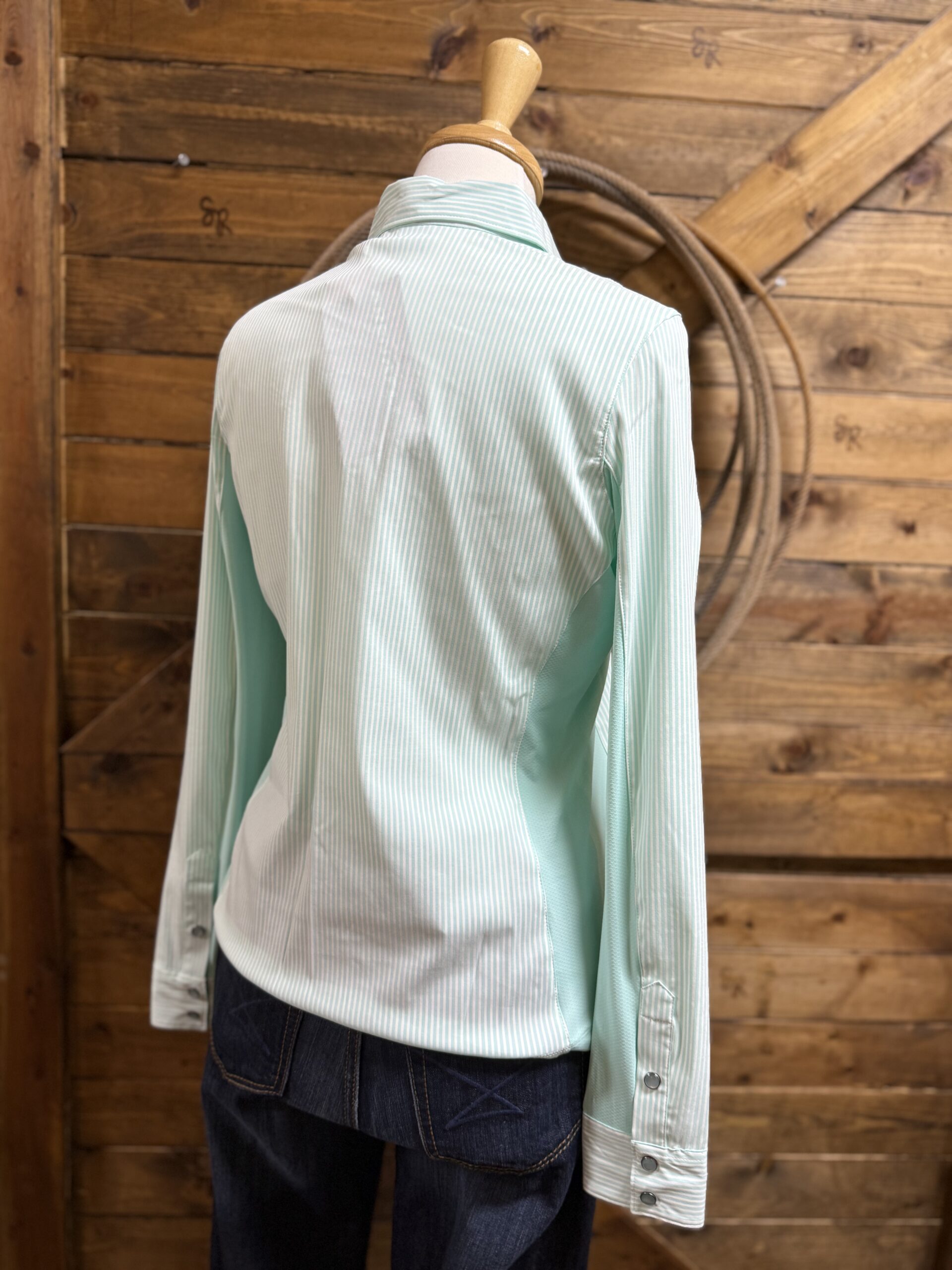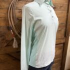 Ladies, you are going to love this one! It’s made for the barn, time in the arena, and everything else in between. Great mix of performance and style with just the right amount of flex. Performance material that is everything we are looking for without sacrificing style. The light weight design is made for all season wear throughout the year. It’s featured with a wrinkle resistance that will wick moisture away from the skin all while protecting you with UV defense technology. It’s quick to dry and easy to care for. The style is right up our alley as well. Easy to pull over, the collar is a standard with a pretty row of color matched pearl snaps coming down the front. The sleeves are traditional with a pearl snap closure. Trust us, it’s a good one! So good we think you will be back for more!