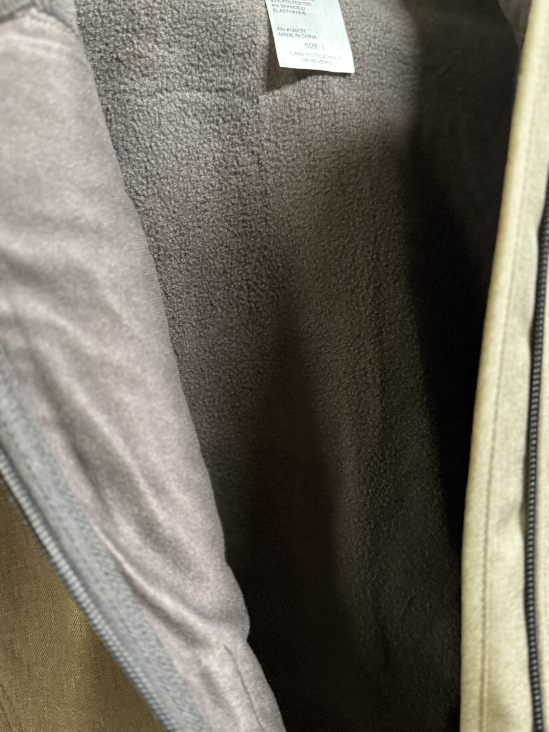 The favorite…..a bonded women’s jacket! Pretty stone textured outer shell that’s versatility makes is ideal for all season wear. It’s equipped with storm defense technology making it wind and water resistant on the outside and warm on the inside with a lightweight fleece lining. The front of the jacket features a full length zipper coming off of a stand up collar. Each side has a single zipper pocket and the chest has a vertical zipper pocket for additional storage as well. Cinch and the logo are embroidered to the left of the chest pocket. All of the zippers are made with an easy pull tab. The bottom hem is made specifically for women with a longer tail and a  semi fitted tailored backside. The design of the jacket in the material makes it machine washable and easy to care for. It’s pretty in color and sleek by design!