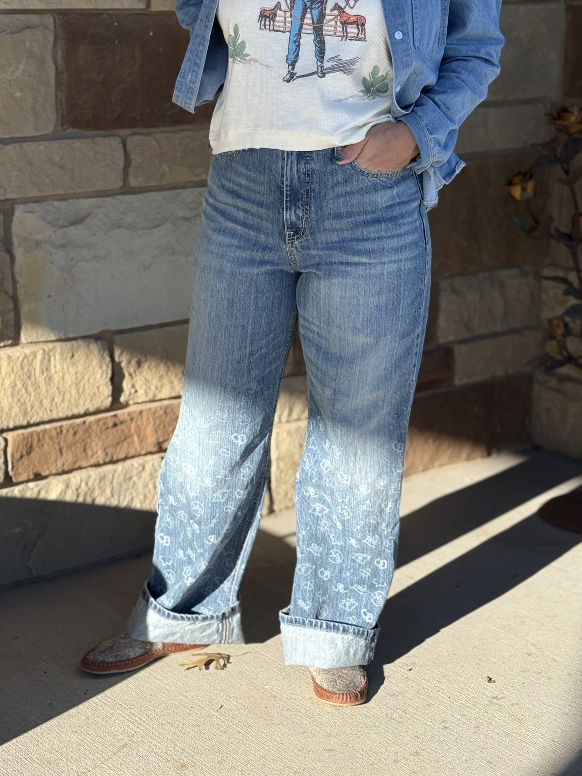 Casey is coming in hot and cute! The high rise and loose fit is a combination that is trending and ladies are loving it! A slightly faded upper on a medium stone wash is ideal. It features the brands on bit darker denim towards the bottom. Double front pockets and back pockets feature the classic cruel denim pocket stitch design. The brands are on both the front and back of the leg in a continuous pattern. Sooo stylish in a vintage era! Get these and hang onto them! They are in now and will be in again several years from now!