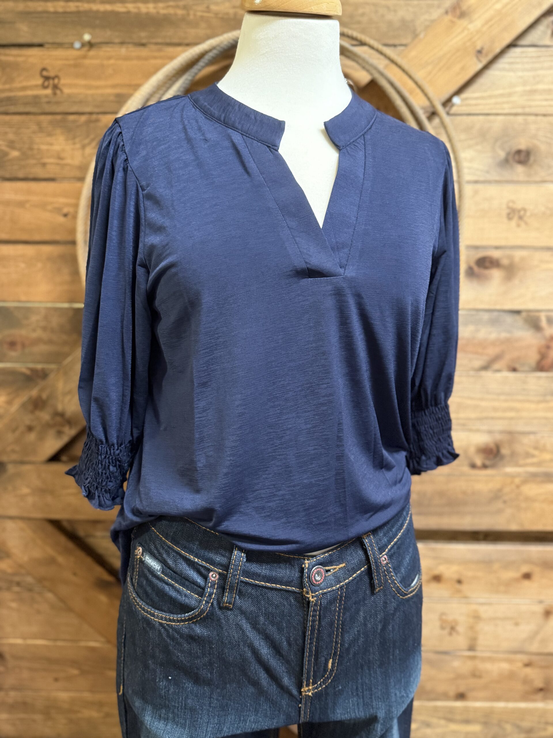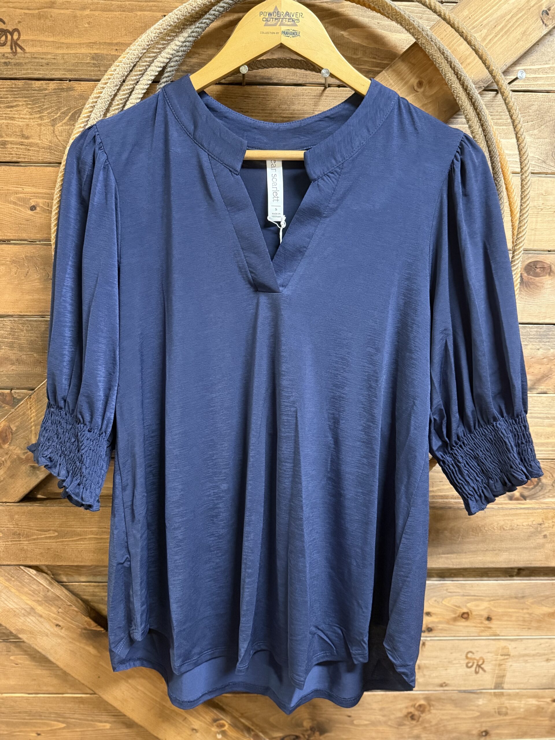 Womens Dear Scarlett 3/4 Sleeve Blouse Navy