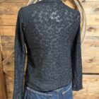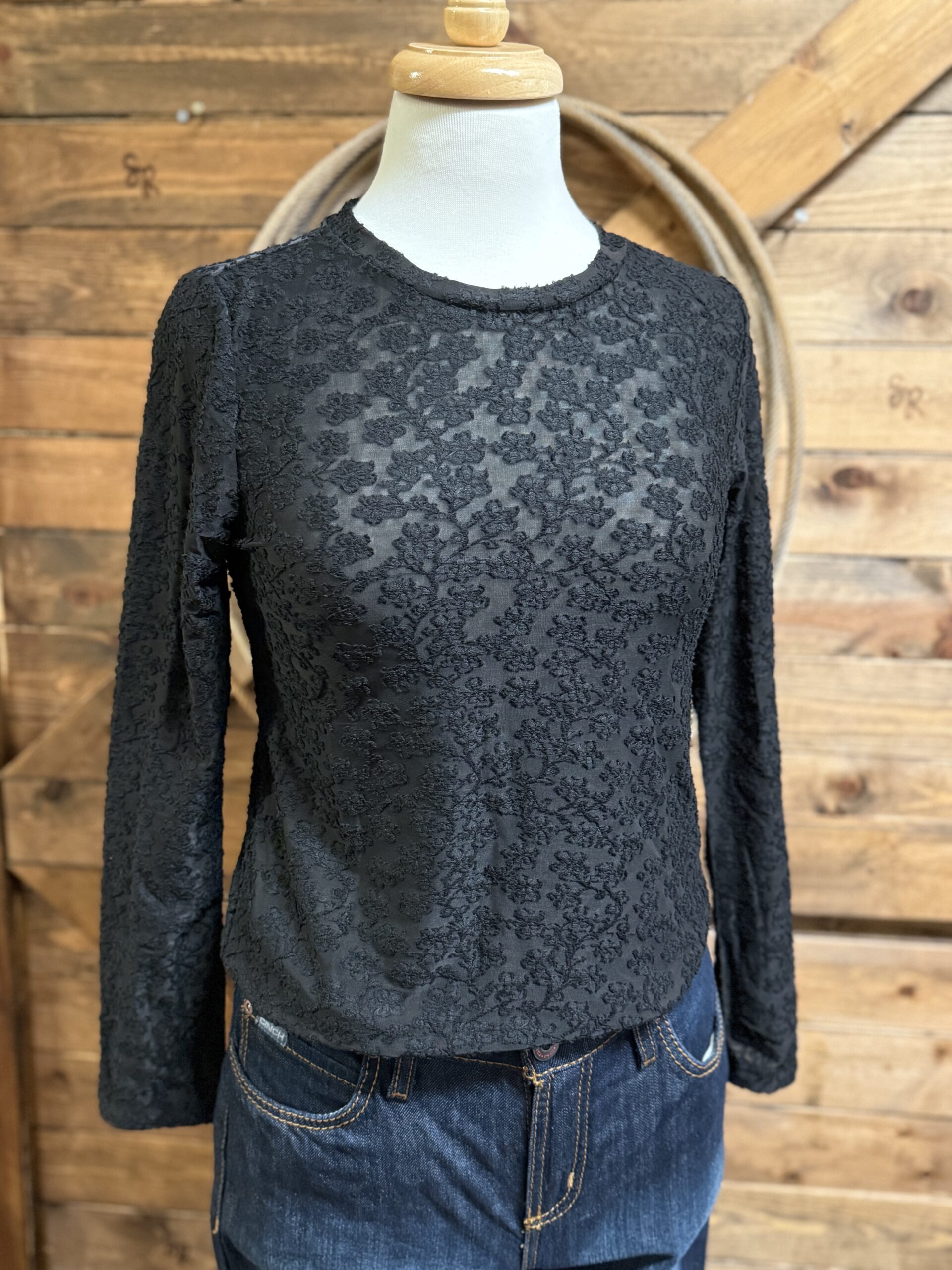 Need a top specifically for layering? Here she is! Beautiful black mesh top with long sleeves covered in the slightest raised florals. The black on black is elegant and easy to pair. Cute crew neck line and a straight sleeve. The length makes it easy to wear tucked in or untucked and still have the same cute look. Grab this one…. it’s a little fancy!