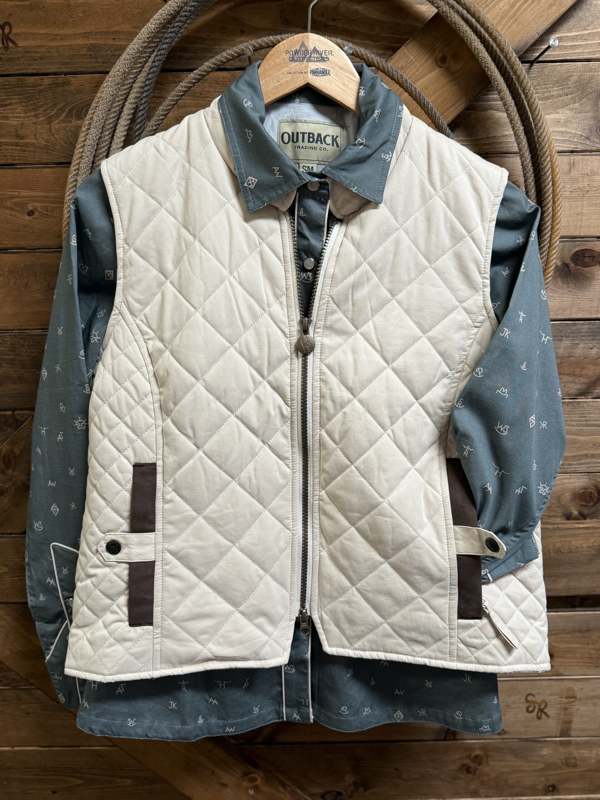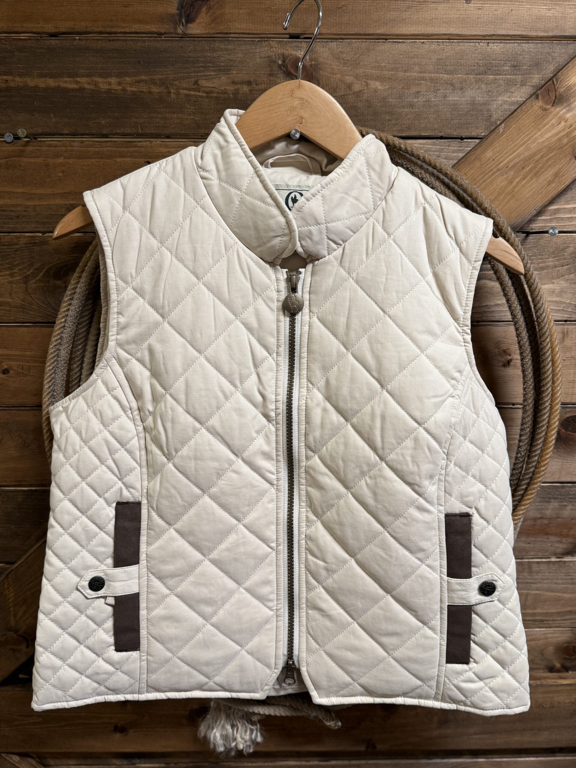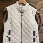 We love our vests this time of year! Cute quilted riding vest that is made with style in mind. The front pockets are so cute! They close on a zipper underneath of a brown flap and also snap on a single button. The back is designed with 2 buttons on each side near the waist to comfortably adjust to your preference. The material is designed to be water resistant and machine washable. Easy to care for! The inside displays a safe security pocket for things you may be hanging onto a little bit tighter. Its functional with style!