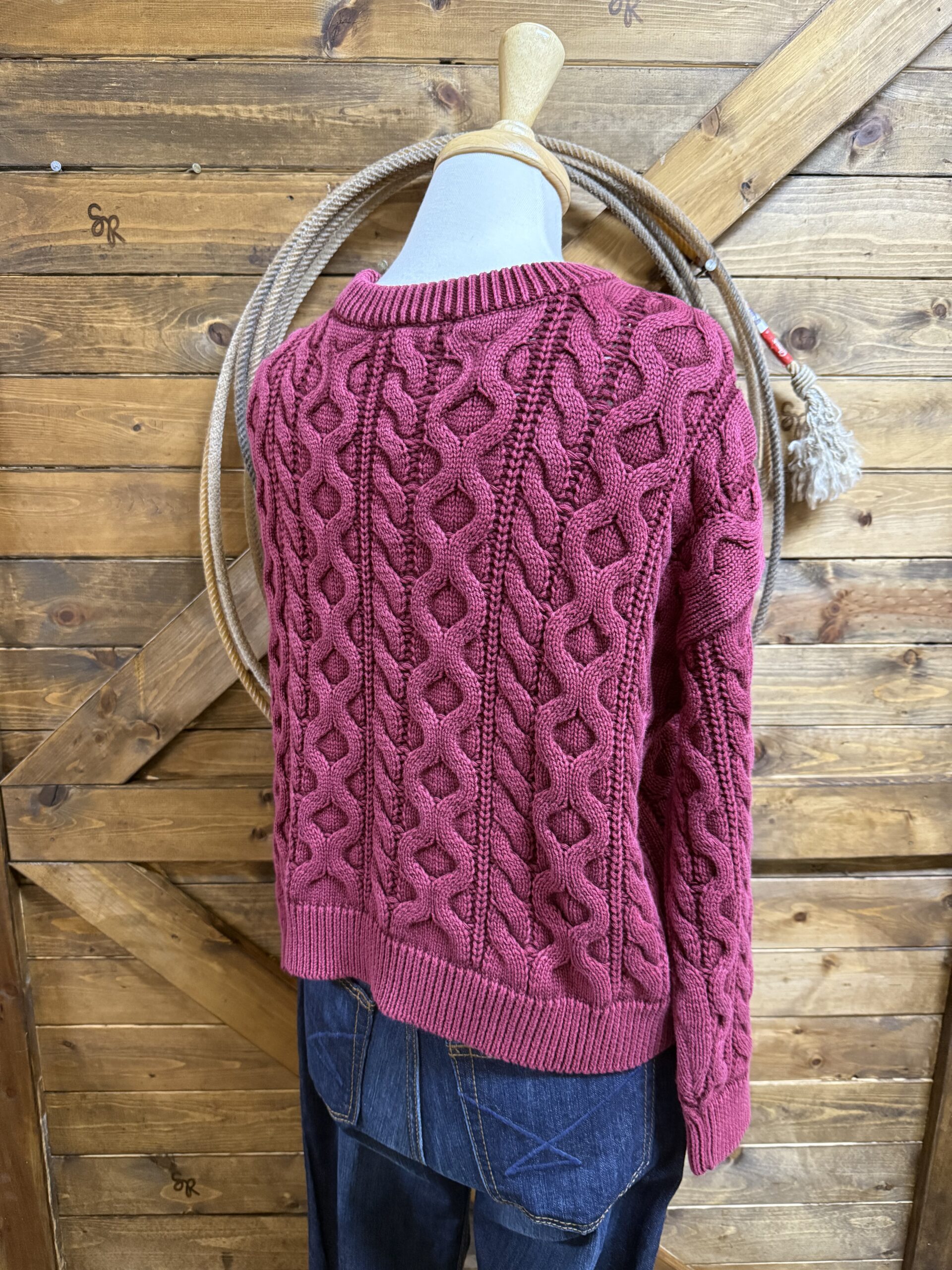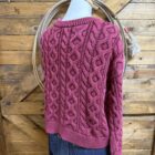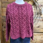 Sweaters are a great piece to have in the closet! And really, who says yo can have too many?? Not us! As a matter of fact we think this beauty needs to be added. Gorgeous burgundy color with the prettiest heavy knit cable threads. The pattern is big enough to create its own look! The same look that is created on the front is also on the back and down both sleeves. A ribbed flat collar and cuffs make it easy to layer if you so choose. Go on and get it! We won’t say a peep:)