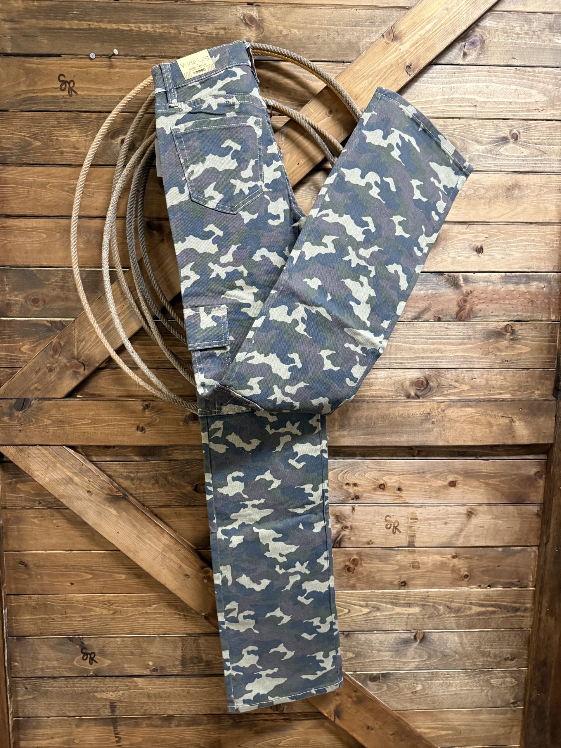 Camo! We are loving the camo comeback! Denim camo may just be one of our favorites in the trend! True cargo denim with all of the extra pockets on the lower parts of the leg. A relaxed fit wide leg adds a little extra leg room with the comfy fit we all want. The high rise flawless fit is flattering on all body type through the front rise. There is a bit of stretch to allow you the fit in which you desire. Pair them with your favorite graphic tees or dress them up! They literally match anything!!