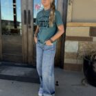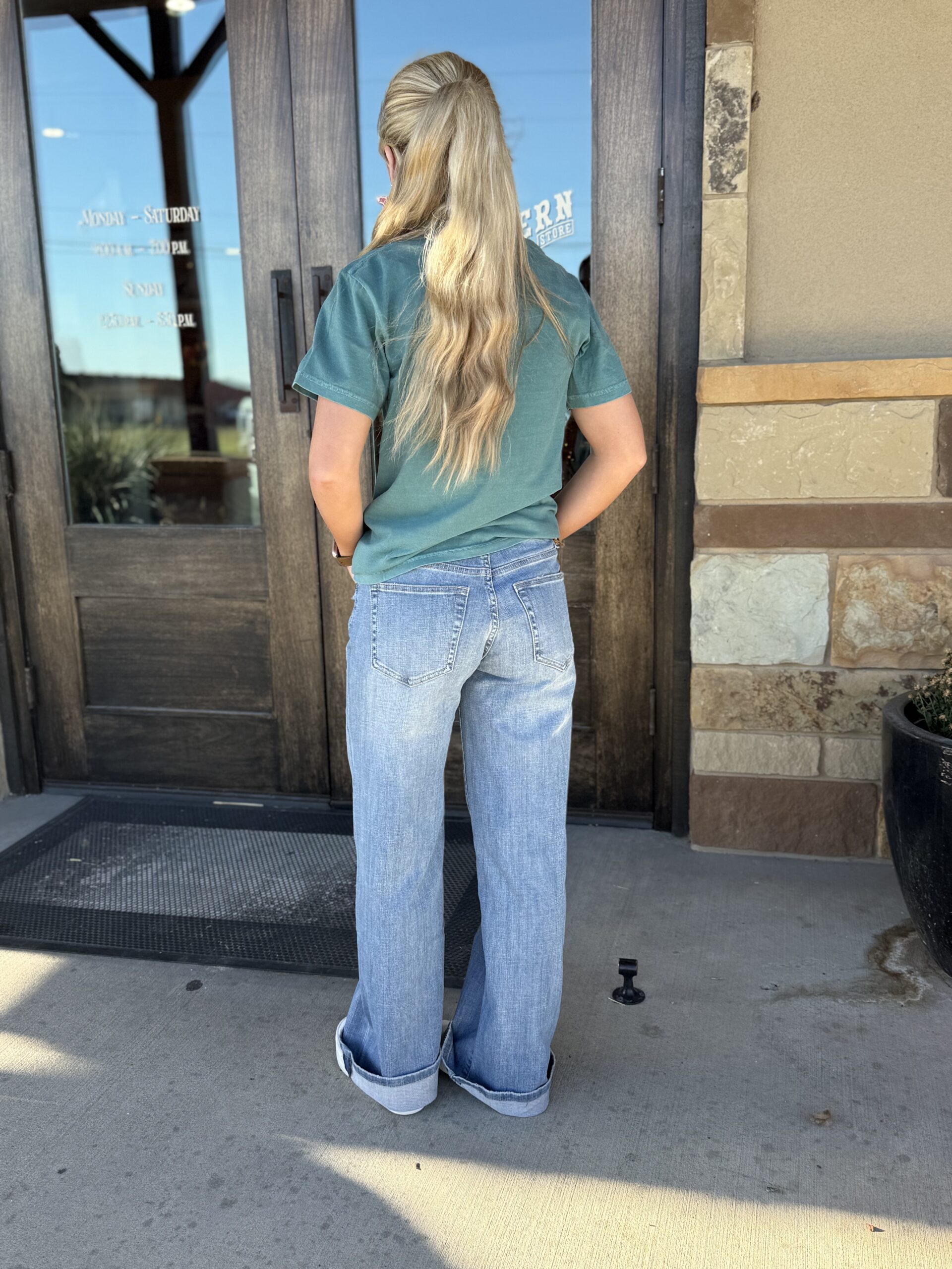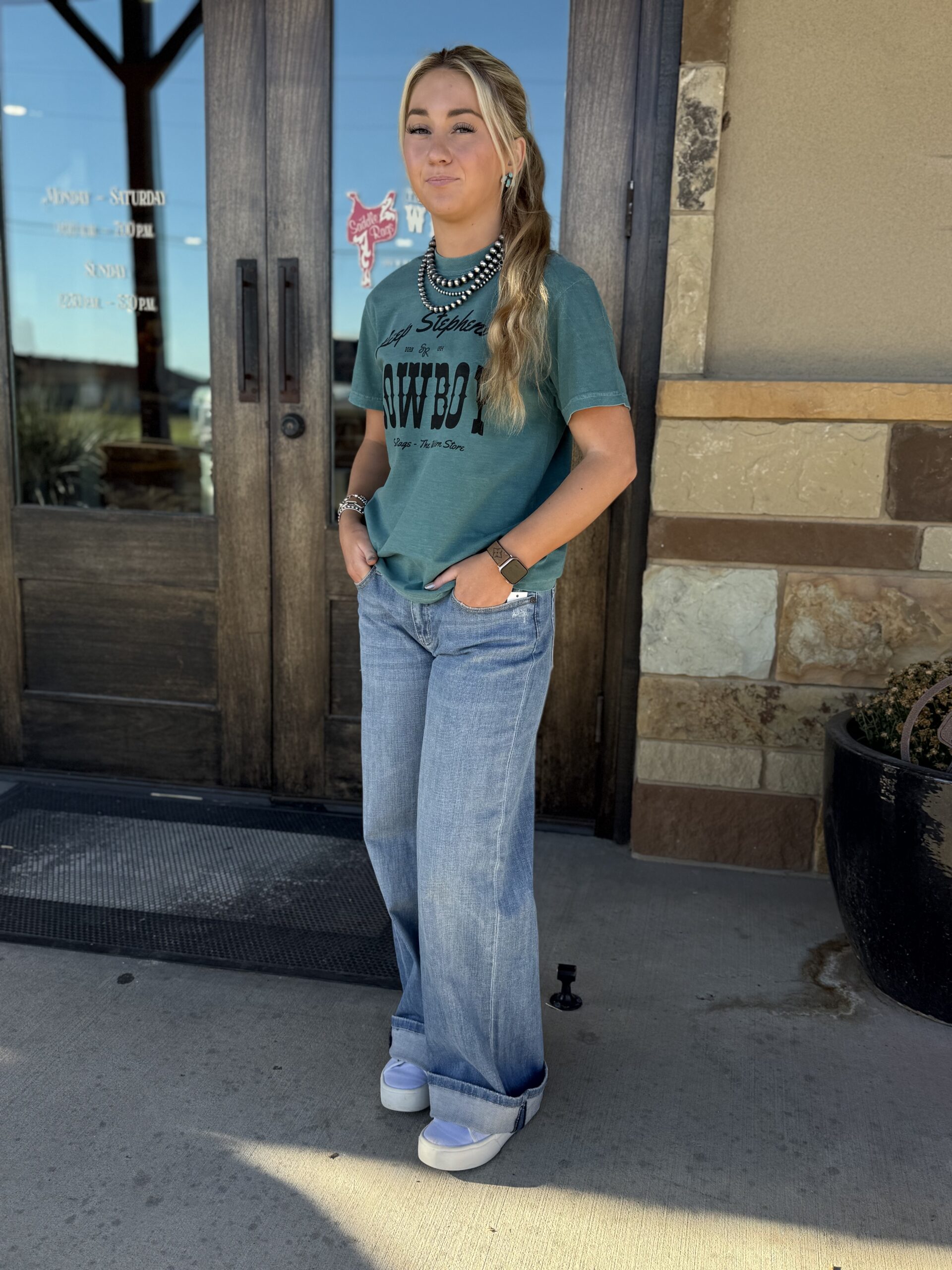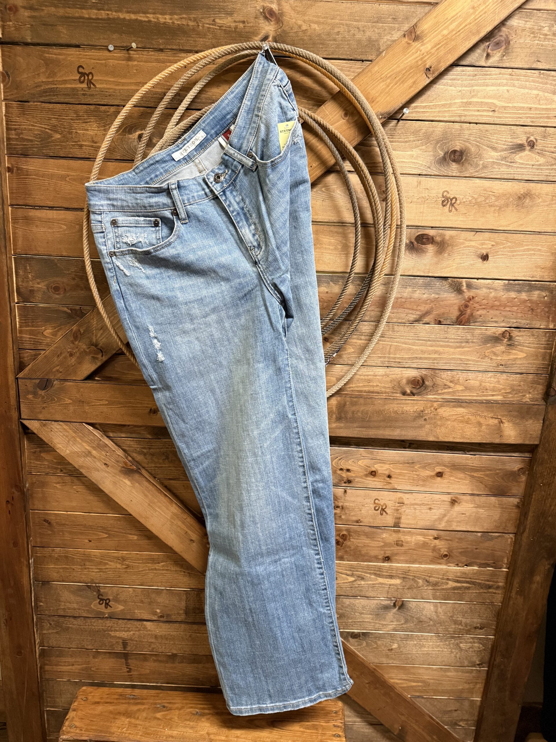Say “Hello” to our new Stetson wide leg jean! Great combination of a wide leg in a mid rise. It’s not too high and it’s not too low. The cut in the leg creates a relaxed fit with all the extra room that you are looking for. Pretty light wash all throughout the denim. The front carries a few small spots near the pockets with a worn-like look to add to the style of the otherwise plain front. The back is everything we have been waiting on. Plain pockets on a light wash denim. No extra stitching, no colored thread, just a good ol plain back pocket in a big square. This denim is easily dressed up or suited perfectly as your favorite everyday jean. A fit that’s hard not to like!